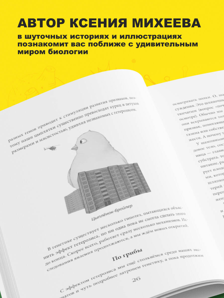 «Книга содержит проиллюстрированные шуточные истории о реальных биологических процессах и явлениях вокруг и внутри нас». — Ксения Михеева, автор блога «Увлекательная биология с Михеевой Ксенией», преподаватель биологии, клинический психолог