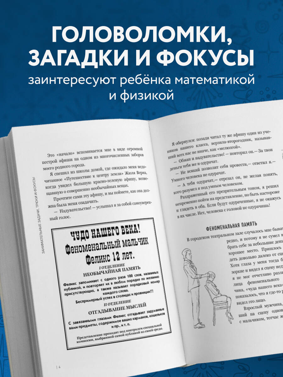 Чем занять пытливый ум ребенка? Как научить его мыслить нестандартно? Этот сборник — идеальный помощник для родителей и учителей! Внутри вас ждут: числовые головоломки, загадки на пространственное мышление, оптические иллюзии и даже фокусы с обычными предметами, которые тренируют память и внимание, развивают аналитическое мышление, учат находить неочевидные решения.
