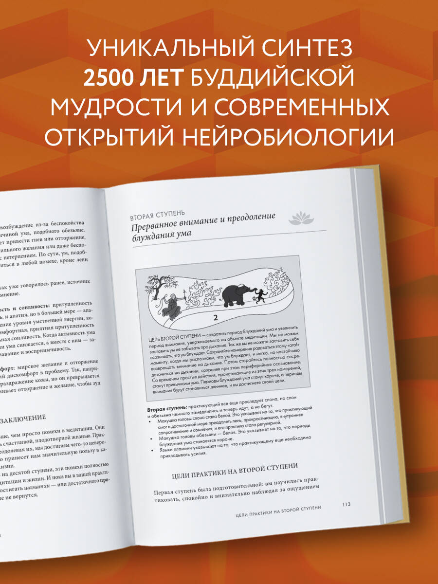 В этой книге он открыл скрытую за пространными и практически не поддающимися расшифровке буддийскими учениями научную истину. Такое сочетание древних знаний и современных когнитивных наук вылилось в ясное, четкое, пошаговое описание того, как работает ум и как медитация помогает нам его тренировать.