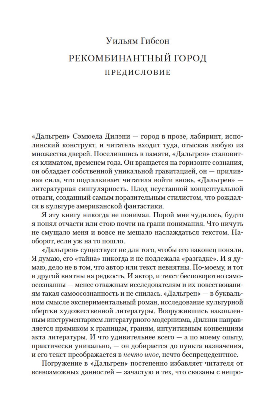 «Город в прозе, лабиринт, исполинский конструкт… “Дальгрен” — литературная сингулярность. Плод неустанной концептуальной отваги, созданный… поразительным стилистом…» (Уильям Гибсон).