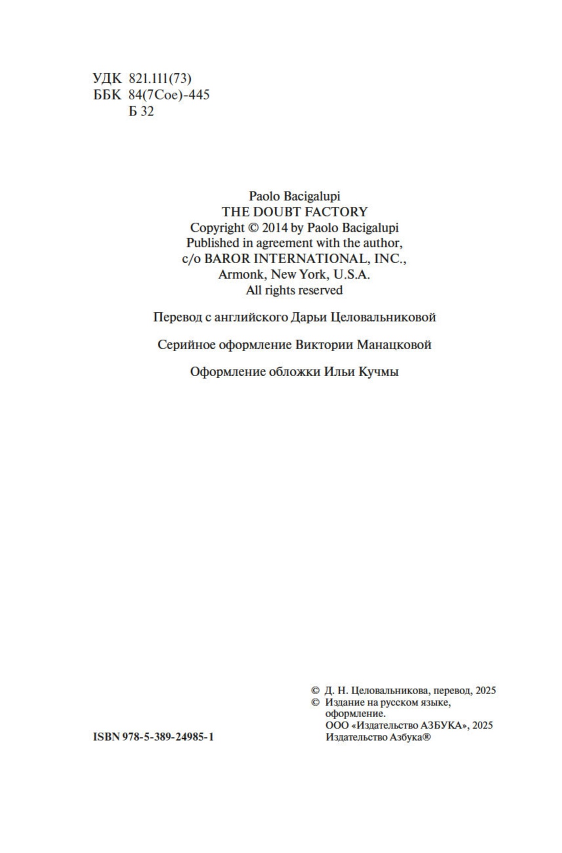 | Автор Паоло Бачигалупи | Страниц 416 | Обложка Твердый переплет |