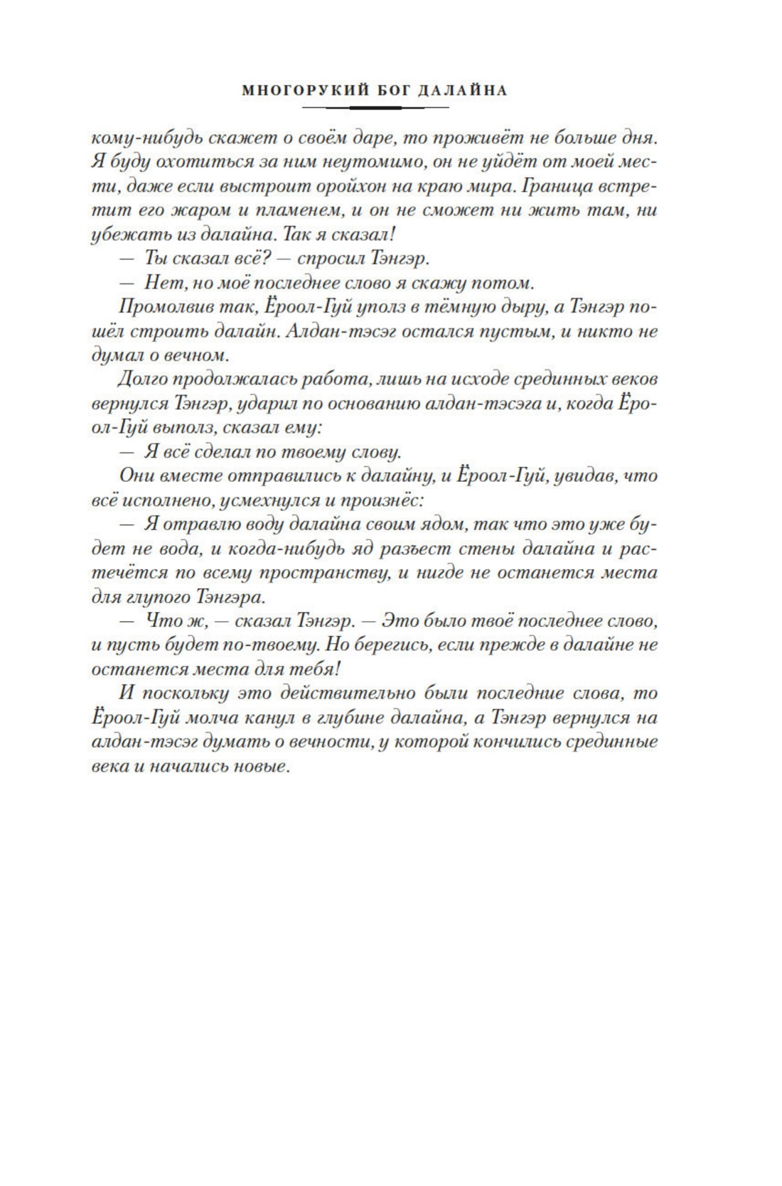 В прямоугольном мире далайна, придуманном Святославом Логиновым, всё расчерчено на квадраты, участки суши фиксированного размера, приспособленные для жизни людей. Вернее, не для жизни — для выживания. Сам далайн расположен в бассейне квадратной формы, заполненном ядовитой слизью. В бассейне обитает чудовище, многорукое порождение бездны. Творец создал этот мир специально для Многорукого, чтобы тот отвлёкся от борьбы с ним и не мешал ему, творцу, размышлять о вечном. Монстр люто ненавидит людей и стремится их уничтожить. Ведь расширяя территорию суши, люди сокращают ему, хозяину жестокого мира, бесценное жизненное пространство. Сам творец не помощник людям, и в далайне человек обречён стать жертвой многорукого бога. Но по воле творца один раз в поколение в этом мире появляется тот, кто способен одолеть монстра. Правда, пока никому из тех, кого судьба избрала совершить этот подвиг, такое не удавалось. Получится ли избавить мир от чудовища у юного Шоорана, которому в его поколении выпала роль избранника?.. Роман «Многорукий бог далайна» дополнен авторским послесловием и главами из продолжения книги, так и оставшейся незаконченной. В сборник входят также лучшие повести писателя разных лет, одна из которых, «Филолог», в книжном виде печатается впервые.