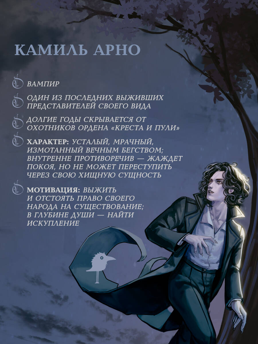 Орден Креста и Пули — тайное общество, ведущее кровопролитную войну против порождений ночи. Его усилиями улицы Парижа очистились от скверны, а мистические существа оказались под угрозой исчезновения. Единственный, кто стоит на пути у братства — Камиль Арно, измученный бессмертием вампир, который больше не в силах бегать и прятаться. Уничтожив его, орден склонит чашу весов в свою сторону, исполнит древнее пророчество. В этом ему должна помочь Эмили, девушка, ослепленная жаждой кровной мести… Добро и Зло сойдутся в финальной схватке, но все ли так однозначно в этой истории? Какая правда скрывается в тени узких столичных переулков и кто в конечном итоге одержит победу в битве тысячелетия? Ответы сумеют вас удивить, ведь порой все не то, чем кажется…