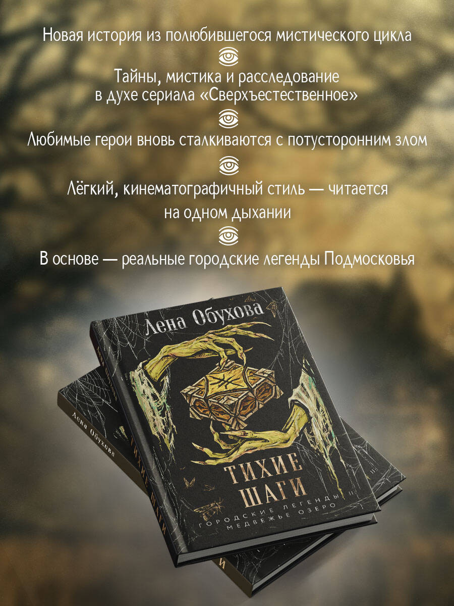 «Тихие шаги» — новинка популярной российской писательницы Лены Обуховой, вошедшая в мистический цикл «Городские легенды II: Медвежье озеро». Захватывающая история с неожиданной развязкой в духе «Сверхъестественного».