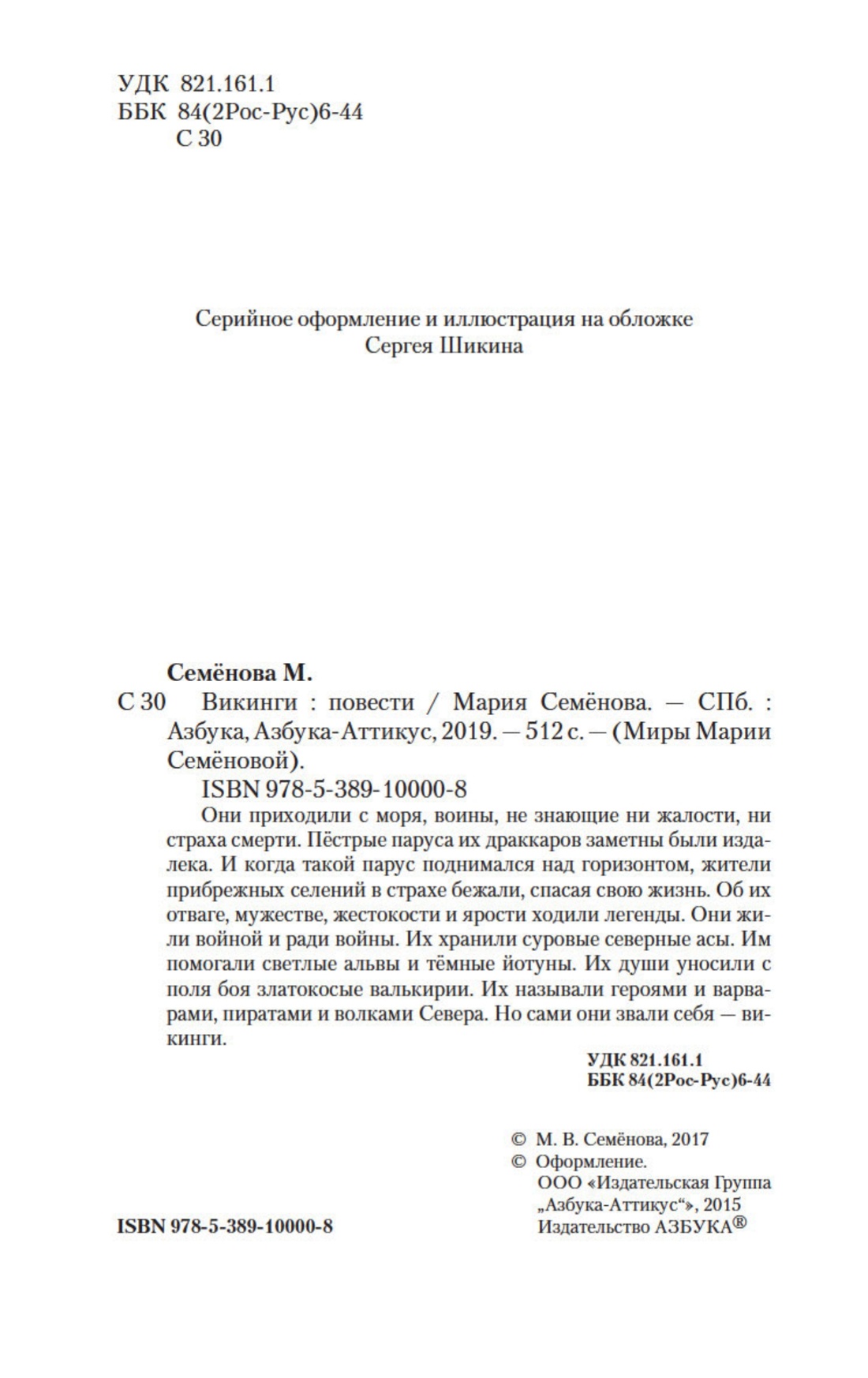 | Вес (кг) 0.512 | Серия Миры Марии Семеновой | ISBN 978-5-389-10000-8 |