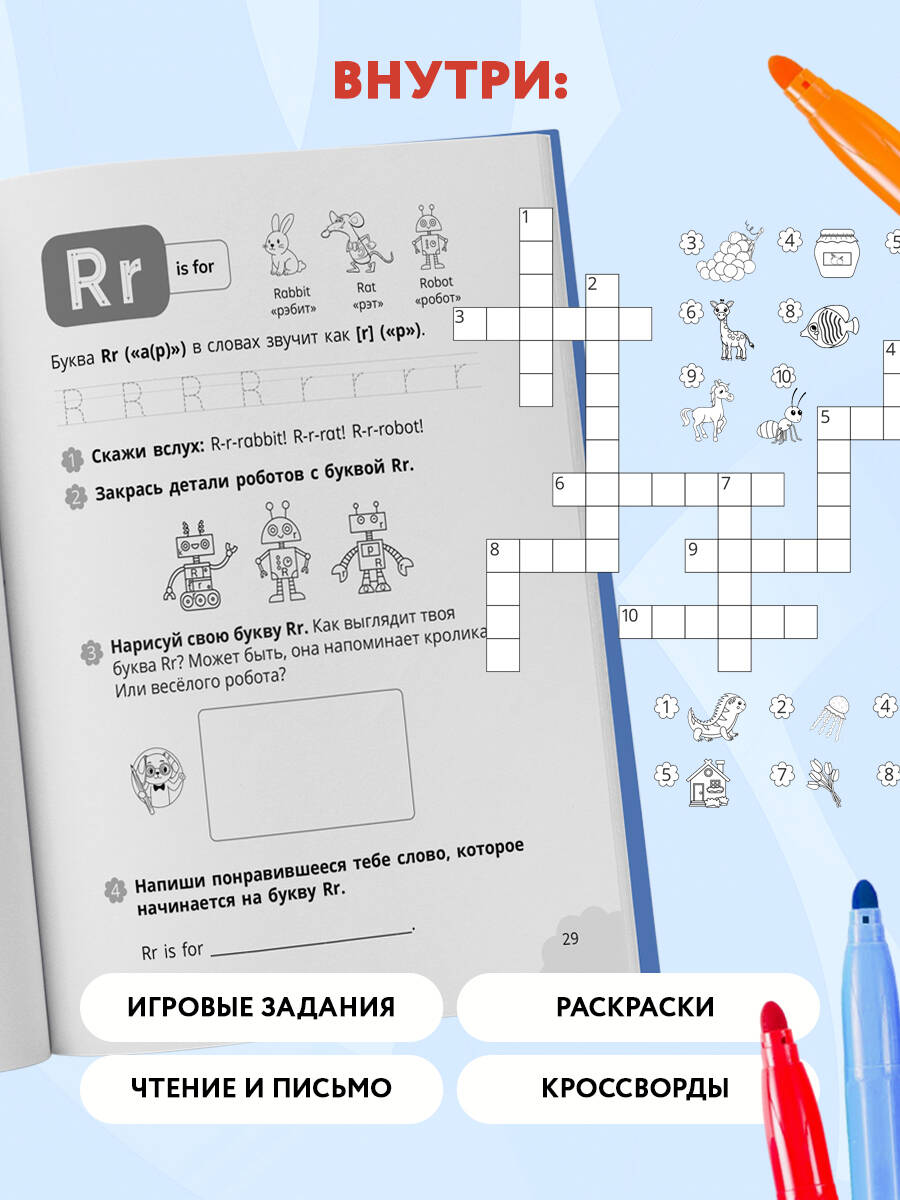 Веселые задания с рисованием, играми и даже придумыванием историй превратят обучение в интересное занятие, а интерактивные задания помогут развить мелкую моторику. Книга подойдет для детей младшего школьного возраста и станет полезным помощником как для самостоятельных занятий дома, так и в дополнение к школьным урокам английского языка.