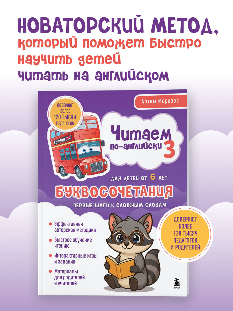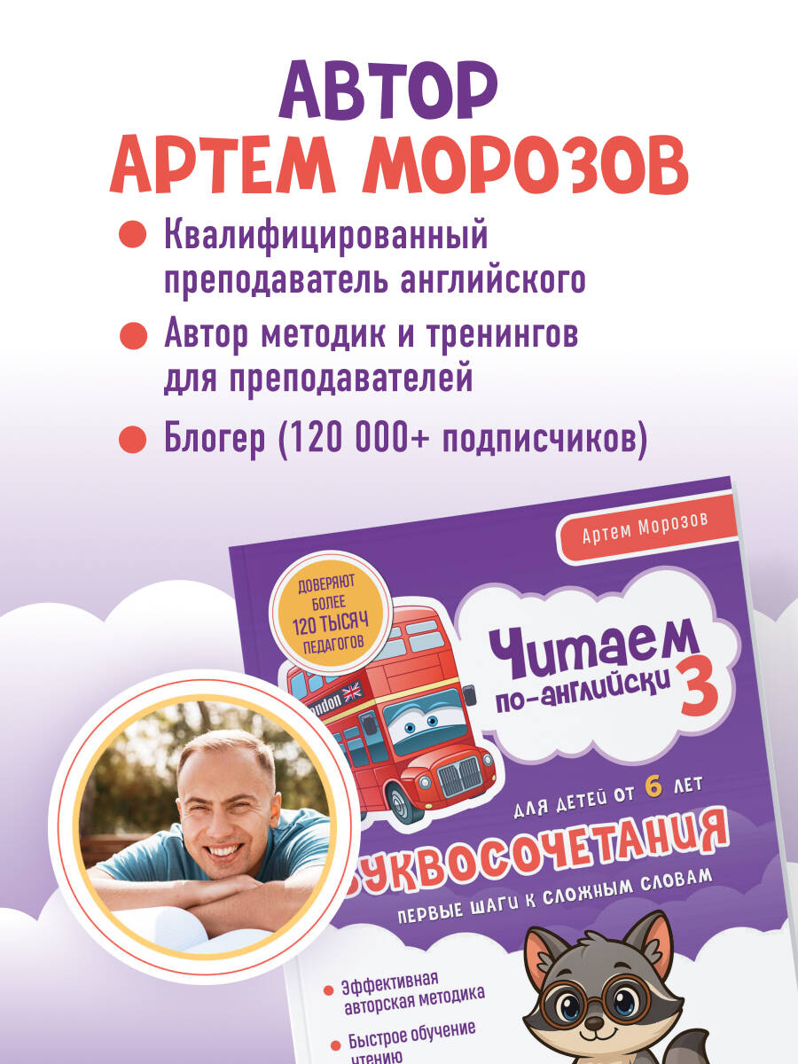 Третья книга по чтению для детей от Артема Морозова, основателя успешного проекта Mishkie и сертифицированного преподавателя, посвящена буквосочетаниям! Уникальная авторская методика завоевала доверие более 120 тысяч педагогов и родителей.