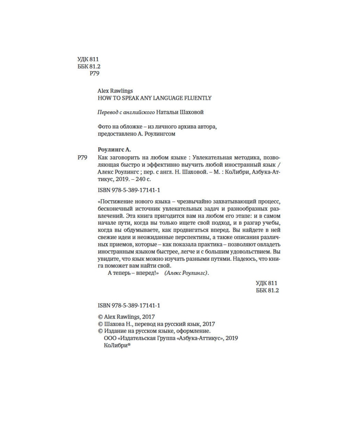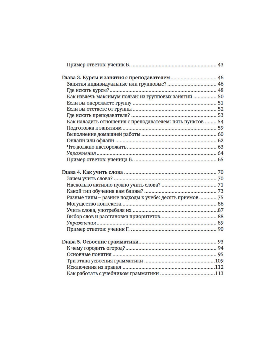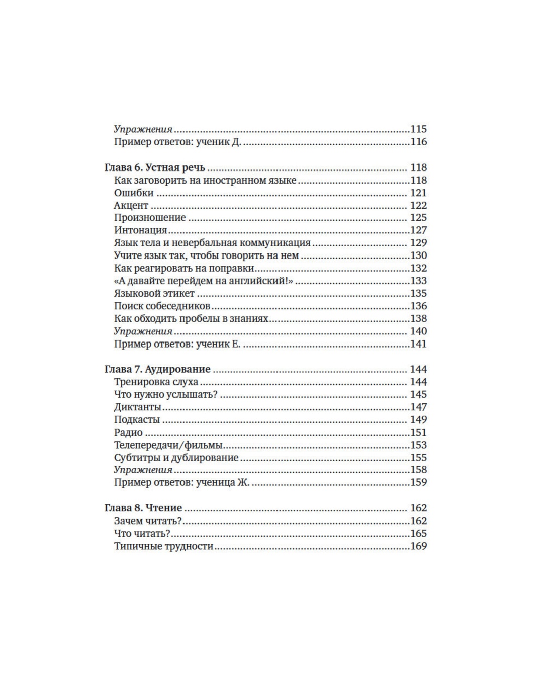 «Постижение нового языка – чрезвычайно захватывающий процесс, бесконечный источник увлекательных задач и разнообразных развлечений. Эта книга пригодится вам на любом его этапе: и в самом начале пути, когда вы только ищете свой подход, и в разгар учебы, когда вы обдумываете, как продвигаться вперед. Вы найдете в ней свежие идеи и неожиданные перспективы, а также описания различных приемов, которые – как показала практика – позволяют овладеть иностранным языком быстрее, легче и с большим удовольствием. Вы увидите, что язык можно изучать разными путями. Надеюсь, что книга поможет вам найти свой.