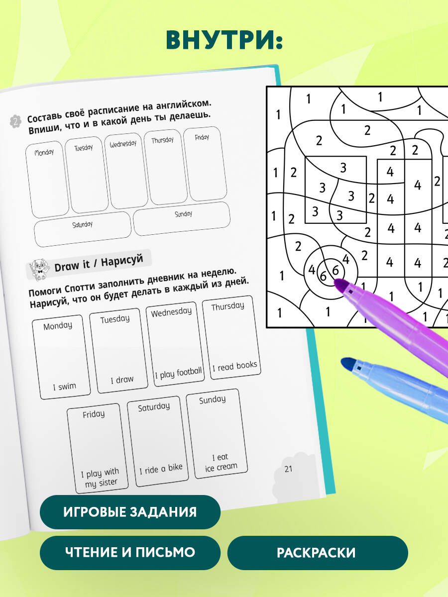 Activity Book — серия увлекательных и понятных пособий по английскому языку для детей. В каждой книге ребенок учится через игру: пишет, рисует, раскрашивает, запоминает новые слова и постепенно делает уверенные шаги в изучении английского.
