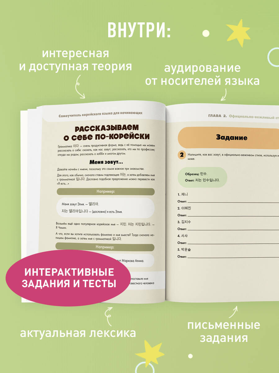 Самоучитель от Ли Элии поможет освоить корейский с нуля до уровня гып 1 через увлекательные примеры и интерактивную практику!