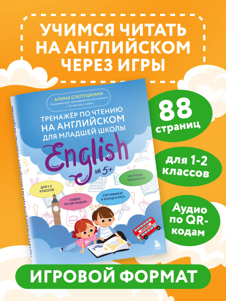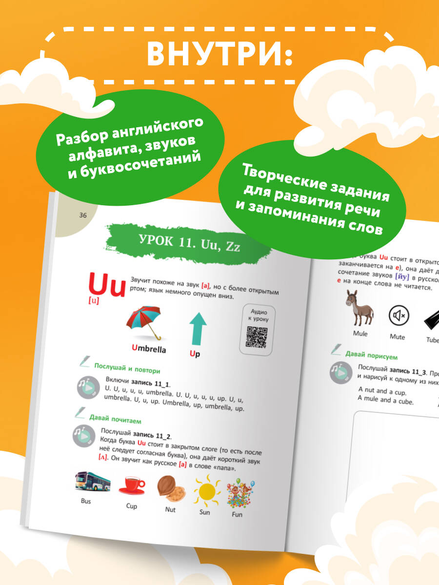 Как легко и играючи обучить ребенка чтению на английском? Достаточно заниматься по этому тренажеру! Книга в ваших руках наполнена яркими заданиями, аудированием по QR-кодам и приятной системой мотивации для ребенка. Тренажер охватывает все буквы алфавита и часто используемые буквосочетания, помогает научиться читать и говорить правильно. В книге 24 урока, в конце каждого предусмотрено место для награды — медальки, которую ребенок с родителем вырезает и приклеивает. По прошествии всех уроков ученик получает сертификат, расположенный в конце книги.