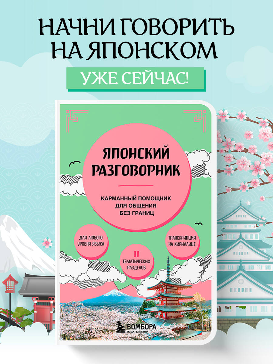 Начни говорить на японском уже сейчас! Японский разговорник поможет изъясниться за границей в различных ситуациях: будь то заказ обеда в ресторане либо поход в аптеку. Разговорник включает в себя множество тем и выражений, снабжённых транскрипцией на кириллице по системе Поливанова. Небольшой формат, гибкая обложка и закруглённые уголки, — всё делает разговорник идеальным карманным помощником!