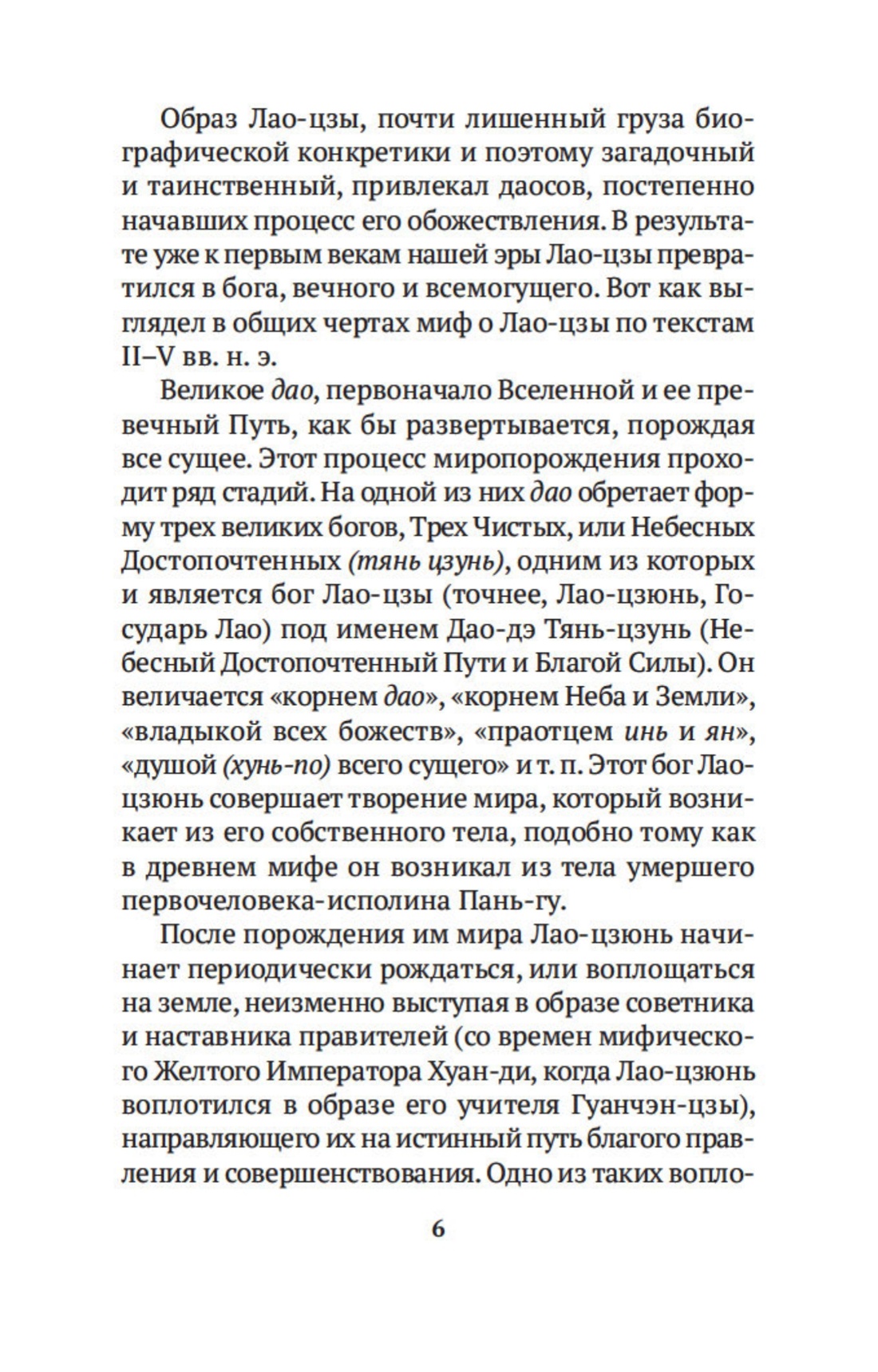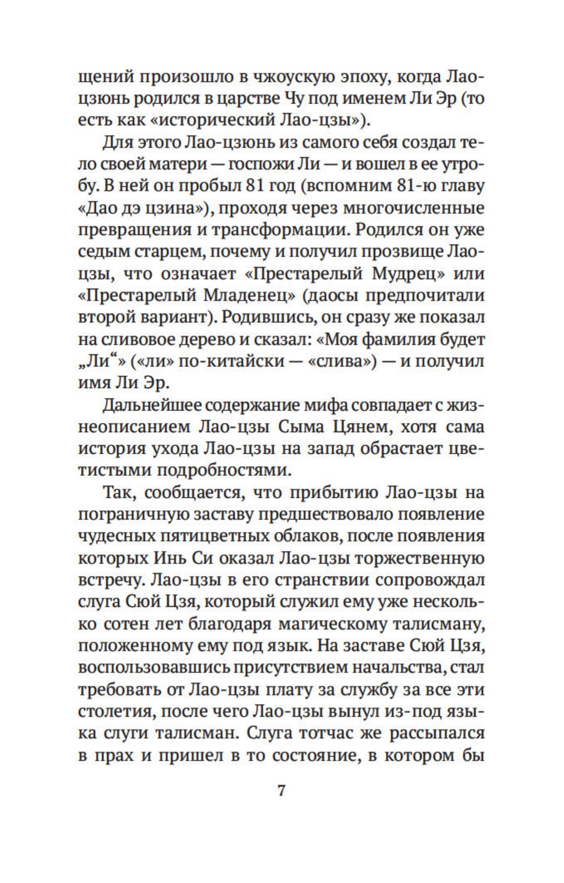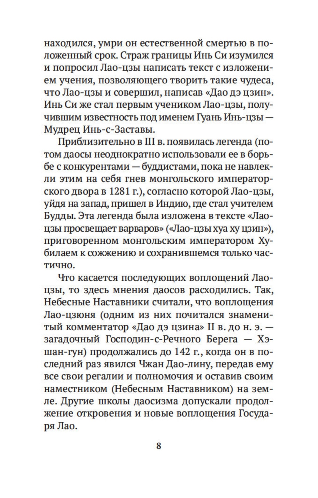 Написанная более двух тысяч лет назад «Книга о Пути и Славе» — так можно перевести древнее название «Дао дэ цзин» («Книга о Дао и Дэ») — и сегодня является одним из самых известных священных текстов. Ее автор Ли Эр, получивший прозвище Лао-цзы, что значит «мудрый старец», — фигура весьма загадочная. Мыслитель и поэт, основоположник религиозно-философского направления даосизма, он был современником Конфуция, служил в императорском архиве, но, следуя своему собственному учению, не стремился к известности и не имел учеников. Уходя от мирской суеты, он написал книгу, которая, по словам историка Сымы Цяня, «глубока по содержанию», ибо говорит о смысле жизни, о «внутреннем человеке».