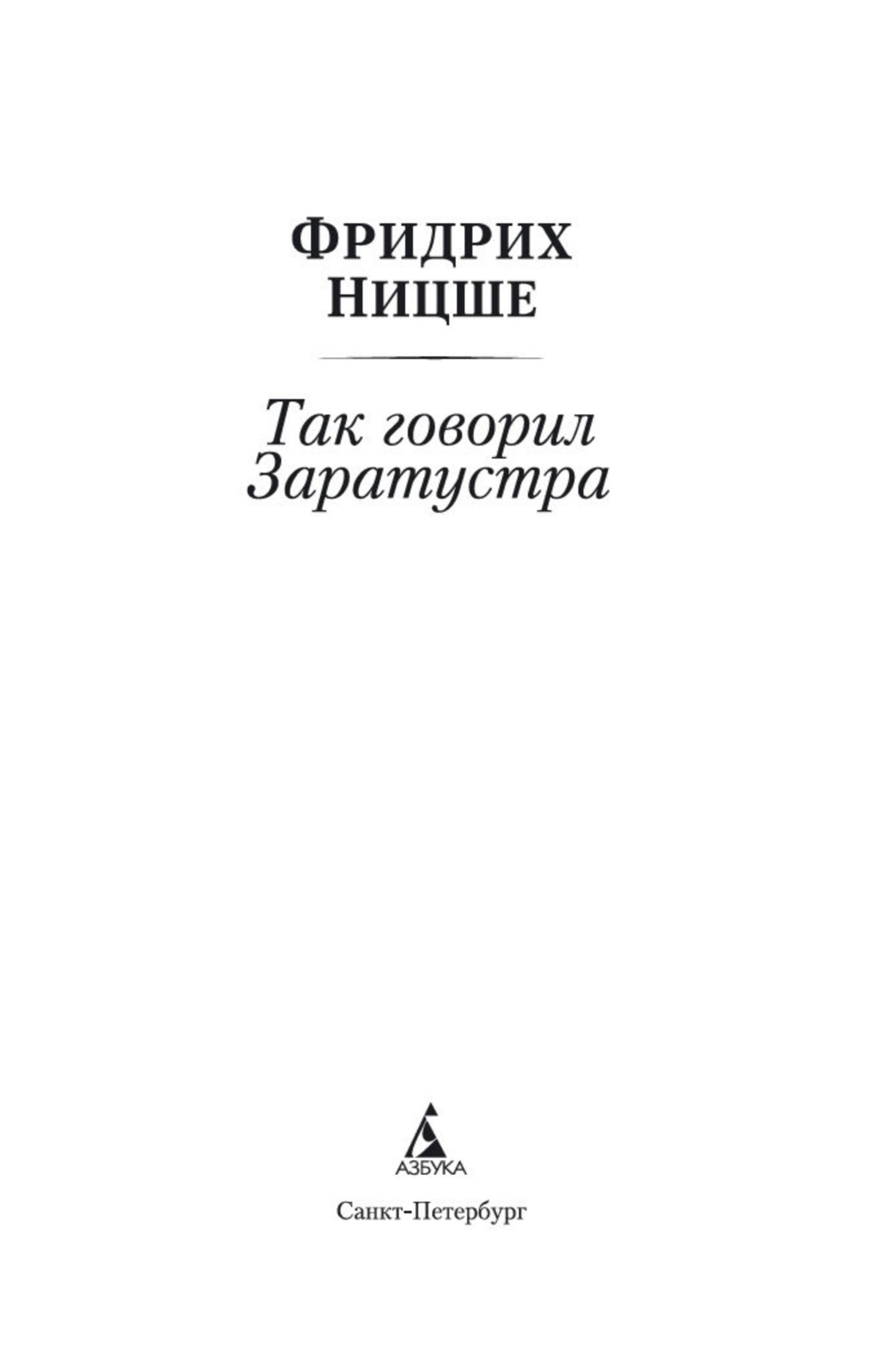 Фридрих Ницше — немецкий философ, филолог-классик, поэт, автор таких известных трудов, как «Рождение трагедии из духа музыки», «По ту сторону добра и зла», «Генеалогия морали», «Антихрист» и др. В настоящем издании вниманию читателей предлагается, пожалуй, самое известное его произведение — «Так говорил Заратустра», в котором основными являются идеи вечного возвращения и сверхчеловека.