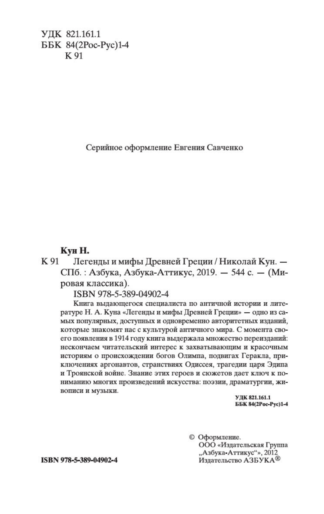 Книга выдающегося специалиста по античной истории и литературе Н. А. Куна «Легенды и мифы Древней Греции» — одно из самых популярных, доступных и одновременно авторитетных изданий, которые знакомят нас с культурой античного мира. С момента своего появления в 1914 году книга выдержала множество переизданий: нескончаем читательский интерес к захватывающим и красочным историям о происхождении богов Олимпа, подвигах Геракла, приключениях аргонавтов, странствиях Одиссея, трагедии царя Эдипа и Троянской войне. Знание этих героев и сюжетов дает ключ к пониманию многих произведений искусства: поэзии, драматургии, живописи и музыки.