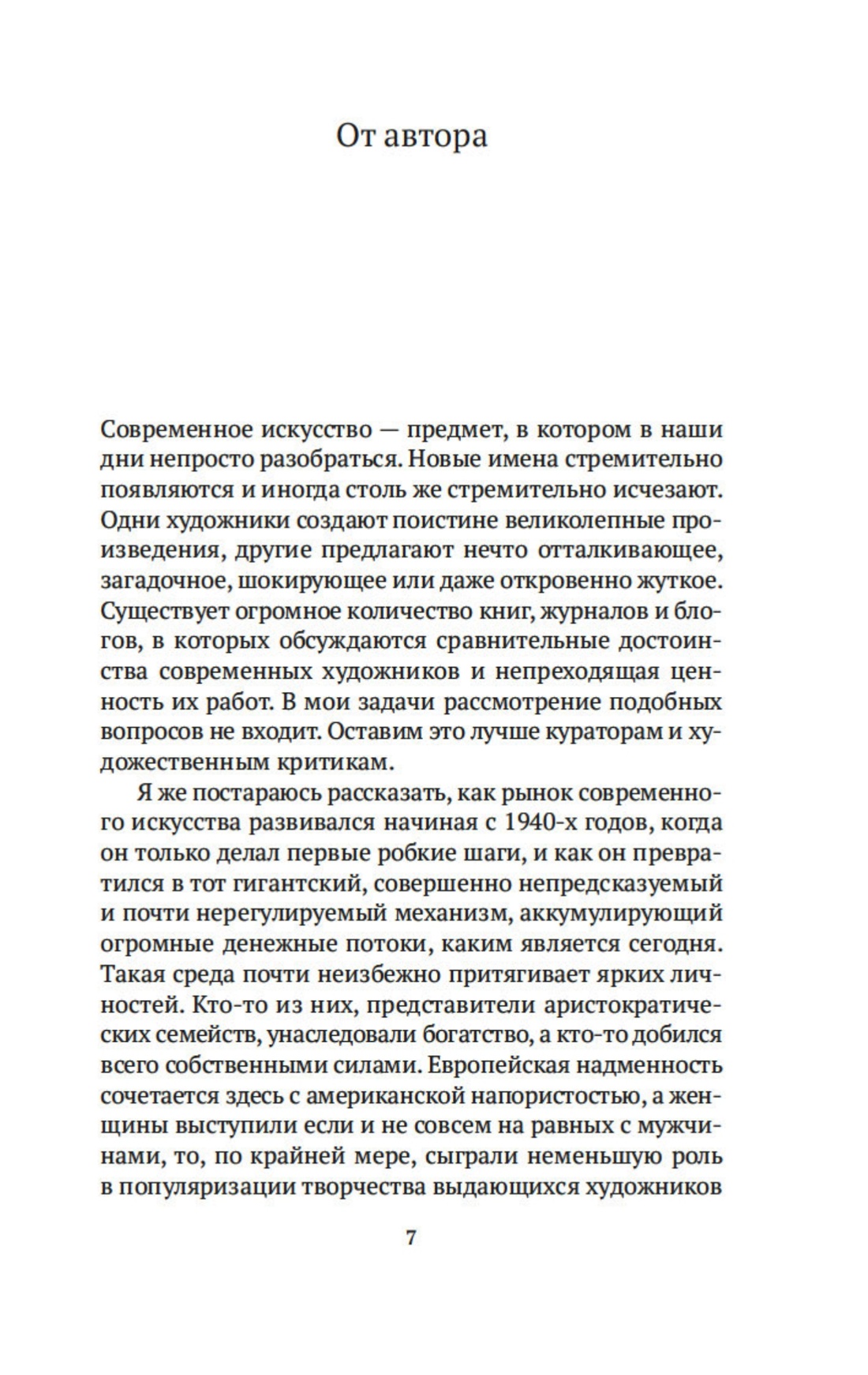 Феномен 57-й улицы в Нью-Йорке, расцвет художественных галерей в Сохо и Челси, ярмарочные лихорадки XXI века, наиболее значительные события в мире искусства за последние десятилетия... И разумеется, арт-дилеры — законодатели вкуса, те, кто поддерживает начинающих художников и направляет их к успеху. На примерах, почерпнутых в личных беседах с ведущими дилерами и галеристами, автор доказывает: за кулисами мира современного искусства, в условиях жесткой конкуренции есть место честным партнерским отношениям и предательству, прагматизму и филантропии, кропотливому труду и авантюризму.