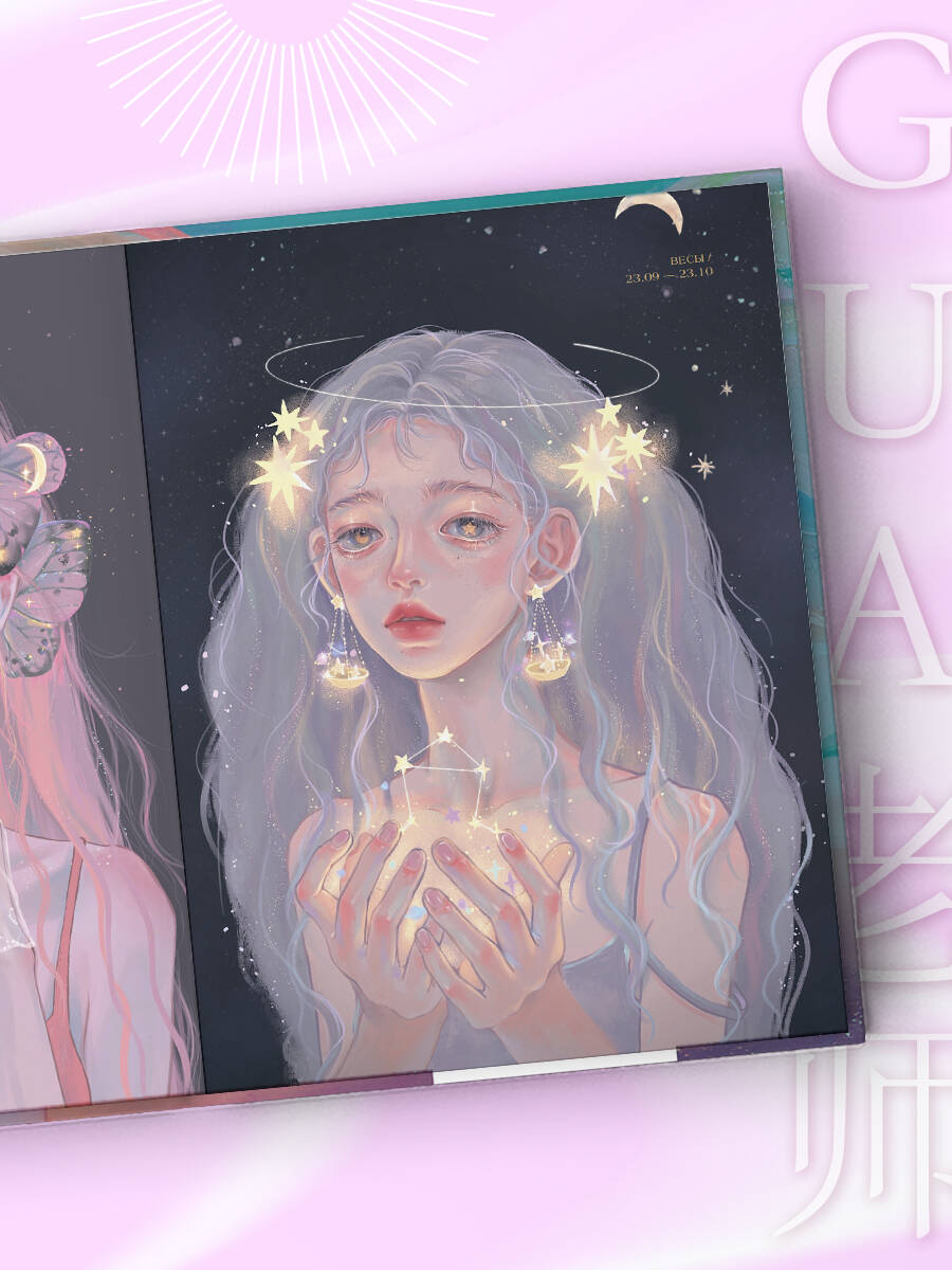 «Когда цвет встречает звезды» — дебютный артбук китайской художницы Учителя Гуа — мастера визуальной поэзии и женской эстетики.