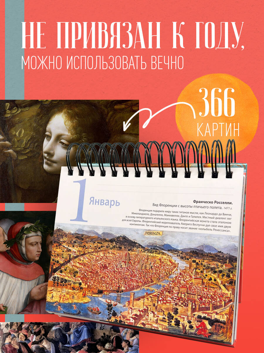 Комплект из вечного календаря и набора закладок! Вечный календарь с признанными шедеврами - это креативная инновация во Вселенной искусства. Он совмещает в себе достоинства картинной галереи, путеводителя по многочисленным течениям в искусстве и функциональные достоинства обычного календаря! В комплекте вы приобретаете набор закладок, чтобы прекрасное точно сопровождало вас везде в течение дня! Приобретение этого комплекта сделает вашу жизнь удобнее, красивее и привнесет в нее пользы, познания нового и интересного! Этот комплект — это не просто аксессуары, это вдохновение, доступное каждый день! Порадуйте себя или своих близких искренним подарком, который объединяет в себе утонченность классического искусства и современный стиль жизни.