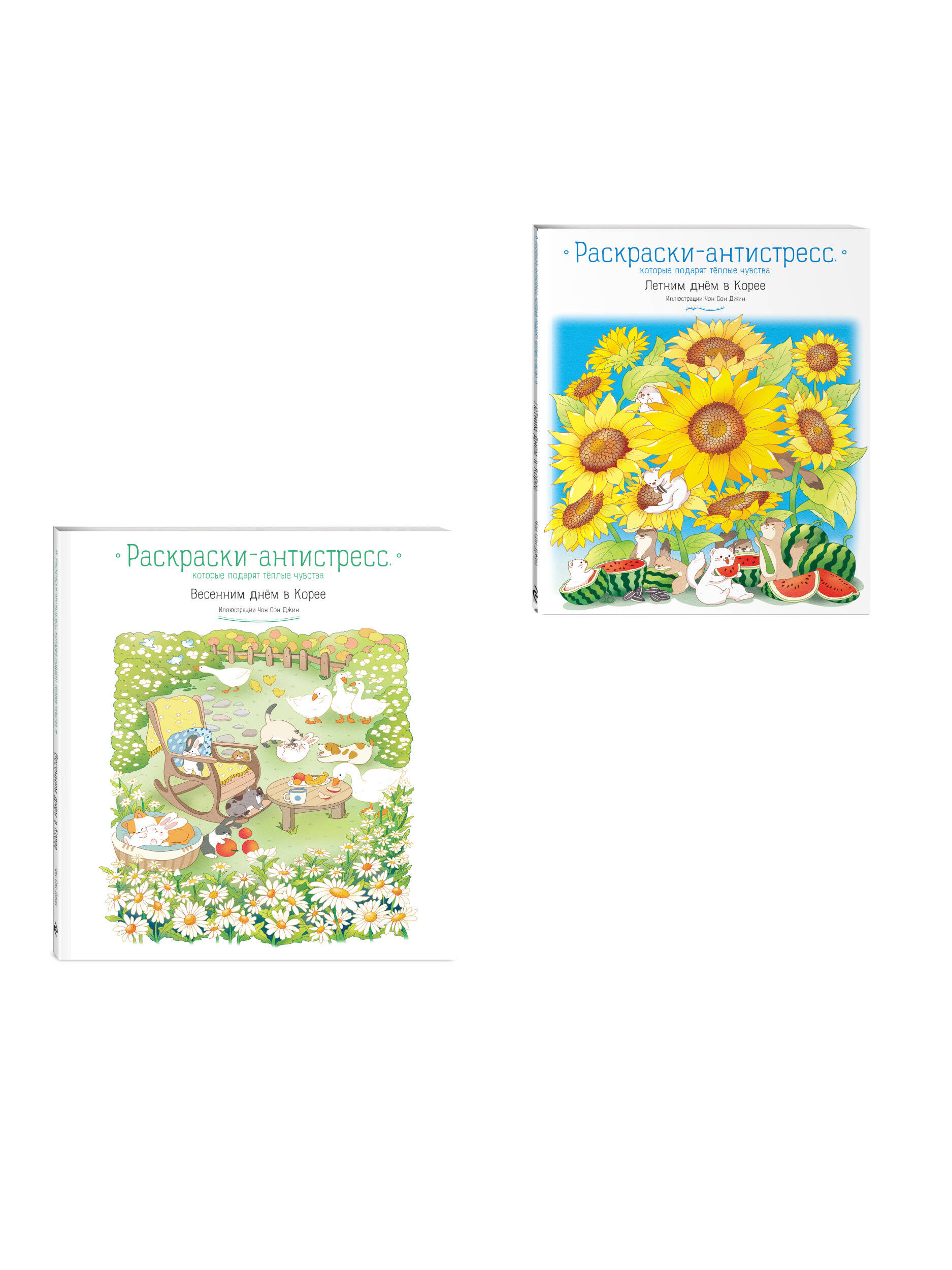 Комплект из 2 раскрасок-антистресс. Весенним днем в Корее + Летним днем в Корее (ИК)