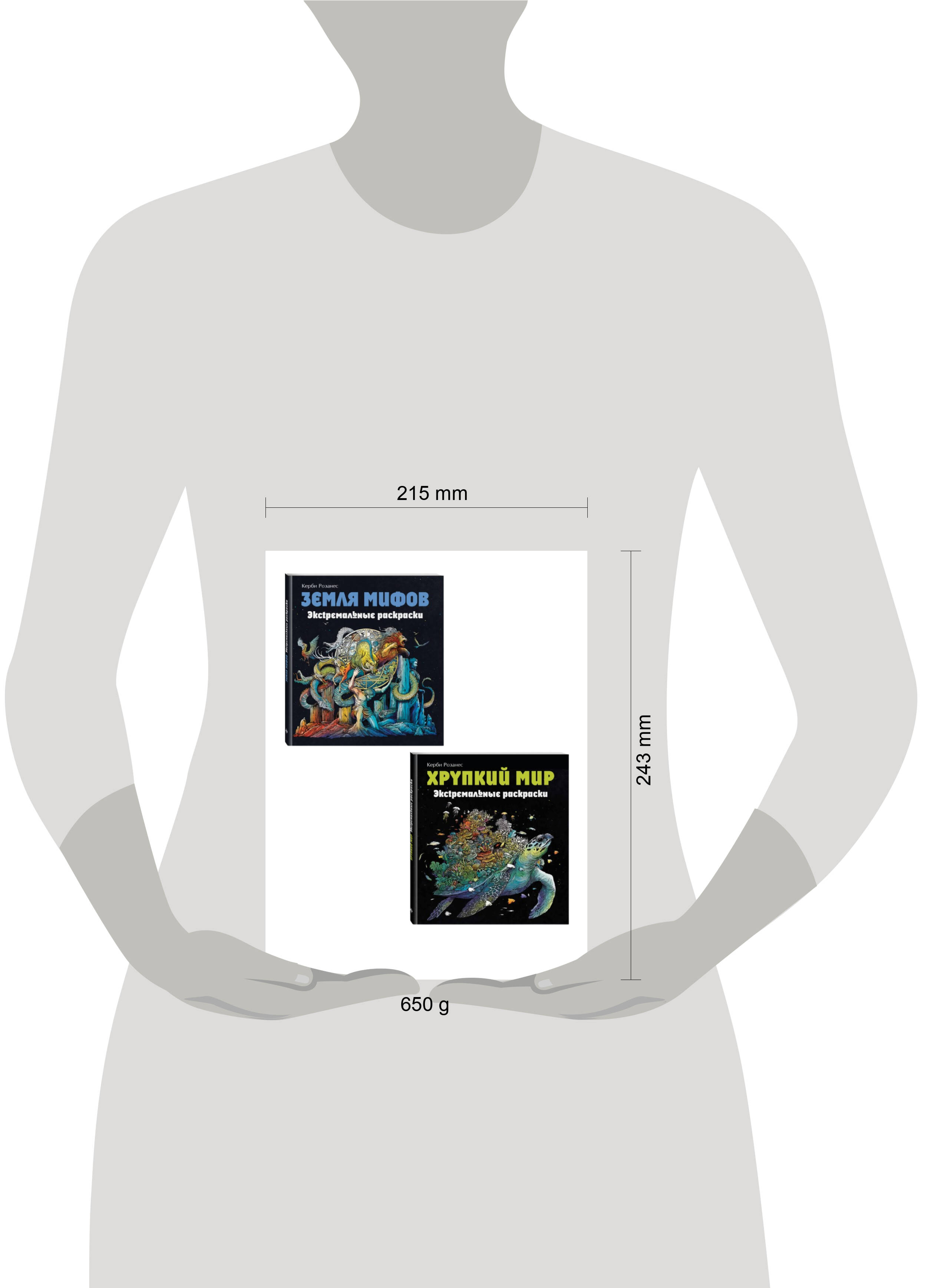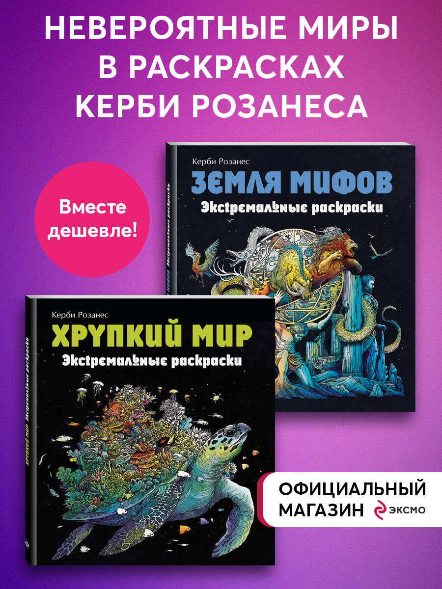 Чарующий комплект, собранный из удивительных раскрасок знаменитого художника Керби Розанеса «Хрупкий мир. Экстремальные раскраски» и «Земля мифов. Экстремальные раскраски».