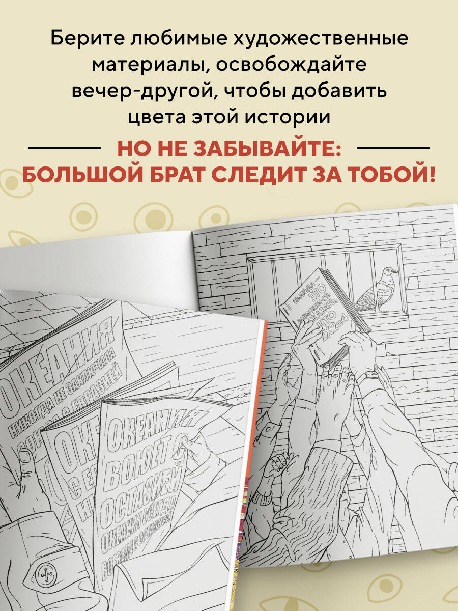 Зачем люди читают антиутопии? А раскрашивают? Раскраска-антиутопия "1984" – это одновременно эстетическое удовольствие от символизма в иллюстрациях и арт-терапия нового времени. Джордж Оруэлл, завершивший свой роман в пик Холодной войны, вдохновлялся странами тоталитаризма и повсеместной пропагандой. Культовое произведение дает читателю возможность пережить противоречивые чувства и боль исторических событий. Добавьте цвет к строгим видам Океании и трогательной истории любви между людьми, взбунтовавшимися против системы.