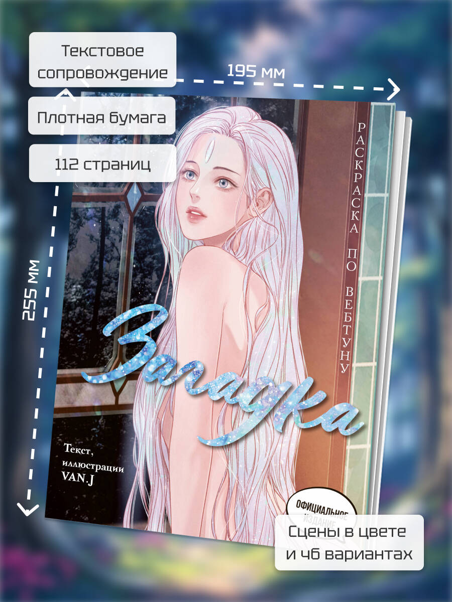 «Загадка. Раскраска по вебтуну» — это сборник раскрасок по мотивам популярного романтического вебтуна «Загадка», который покорил сердца многих своей сказочной историей, прекрасными рисунками и незабываемыми диалогами.