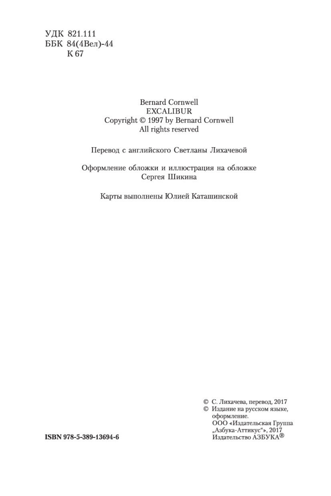 «Экскалибур» — жесткое реалистическое повествование о раннем Средневековье, написанное одним из лучших авторов современного исторического романа Бернардом Корнуэллом. Заключительная книга из трилогии о легендарном короле-полководце Артуре, проникнутая духом подлинной Истории.