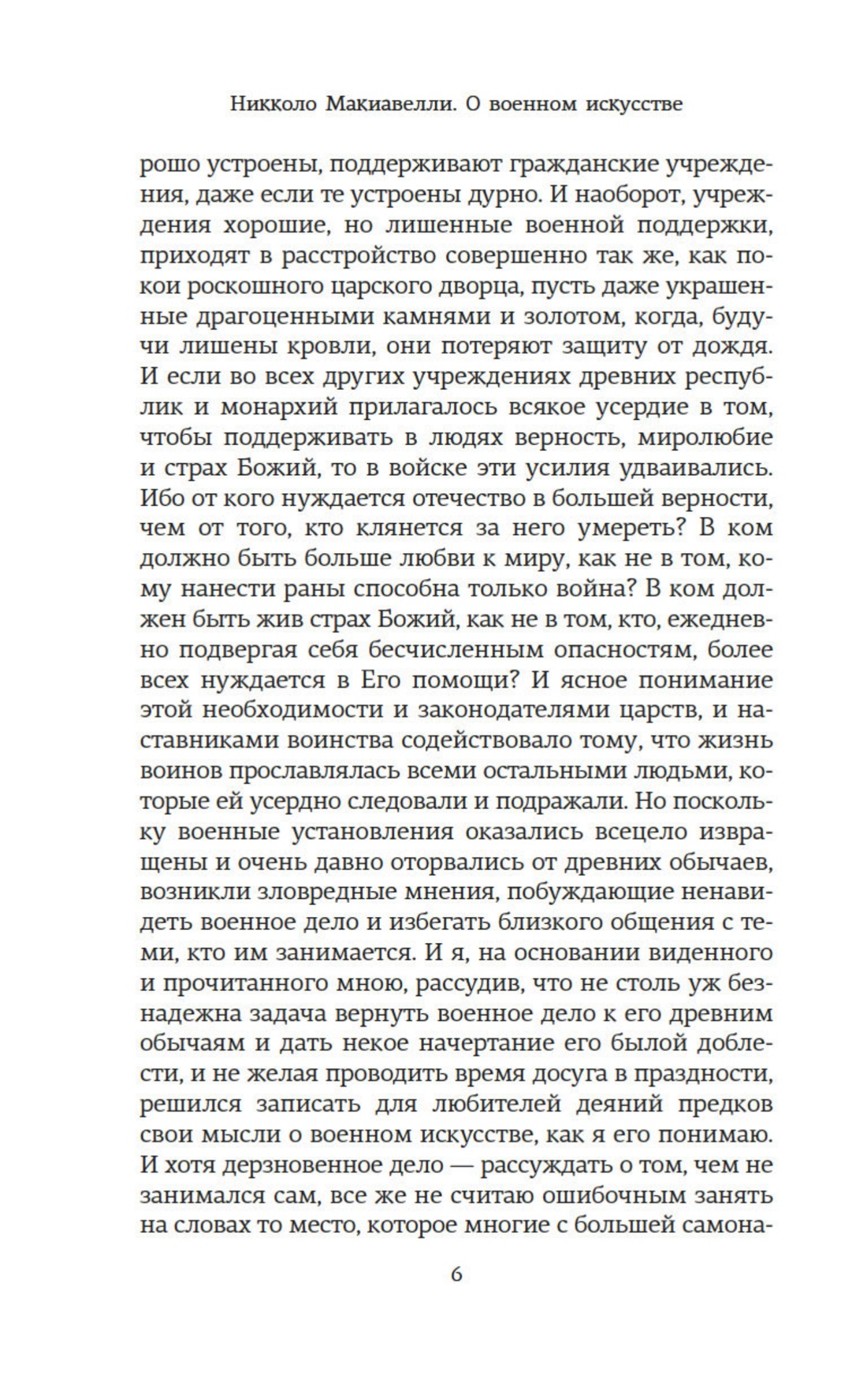 Никколо Макиавелли — один из самых известных итальянских мыслителей и политических деятелей эпохи Возрождения (занимал во Флоренции пост государственного секретаря), писатель, историк, военный теоретик, создавший ряд историко-политических сочинений («Рассуждения о первой декаде Тита Ливия», «История Флоренции»). Самым значительным и неоднозначным его произведением стал трактат «Государь». Долгие годы эта книга ассоциировалась с политикой яда и кинжала, а после ее выхода появился термин «макиавеллизм», обозначающий цинизм, вседозволенность, двуличие в политике. Настоящее издание знакомит читателя с трактатом Макиавелли «О военном искусстве», стоящим в одном ряду с величайшими работами по теории военного дела. Именно здесь впервые звучат идеи, важность которых для последующей истории западного мира трудно переоценить и которые подкреплены множеством примеров великих побед и поражений древности. Трактат «О военном искусстве» представлен в новом переводе и сопровождается статьей и подробными примечаниями.