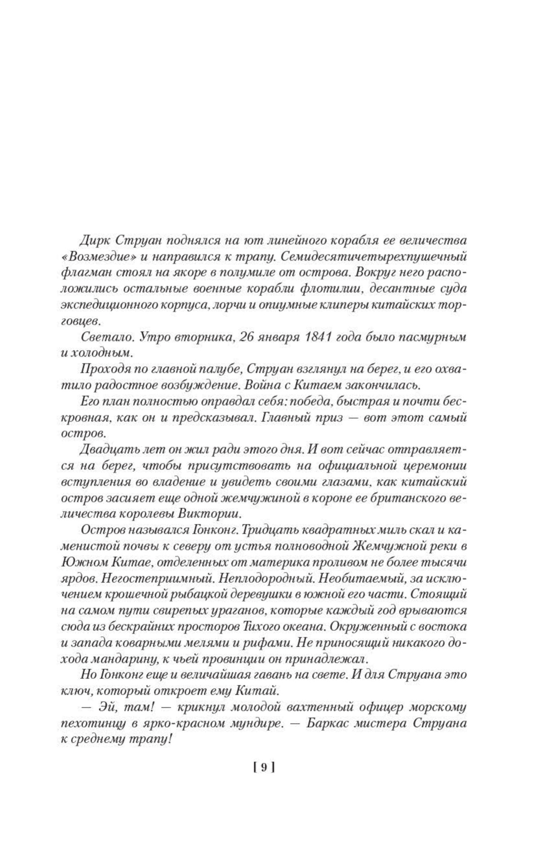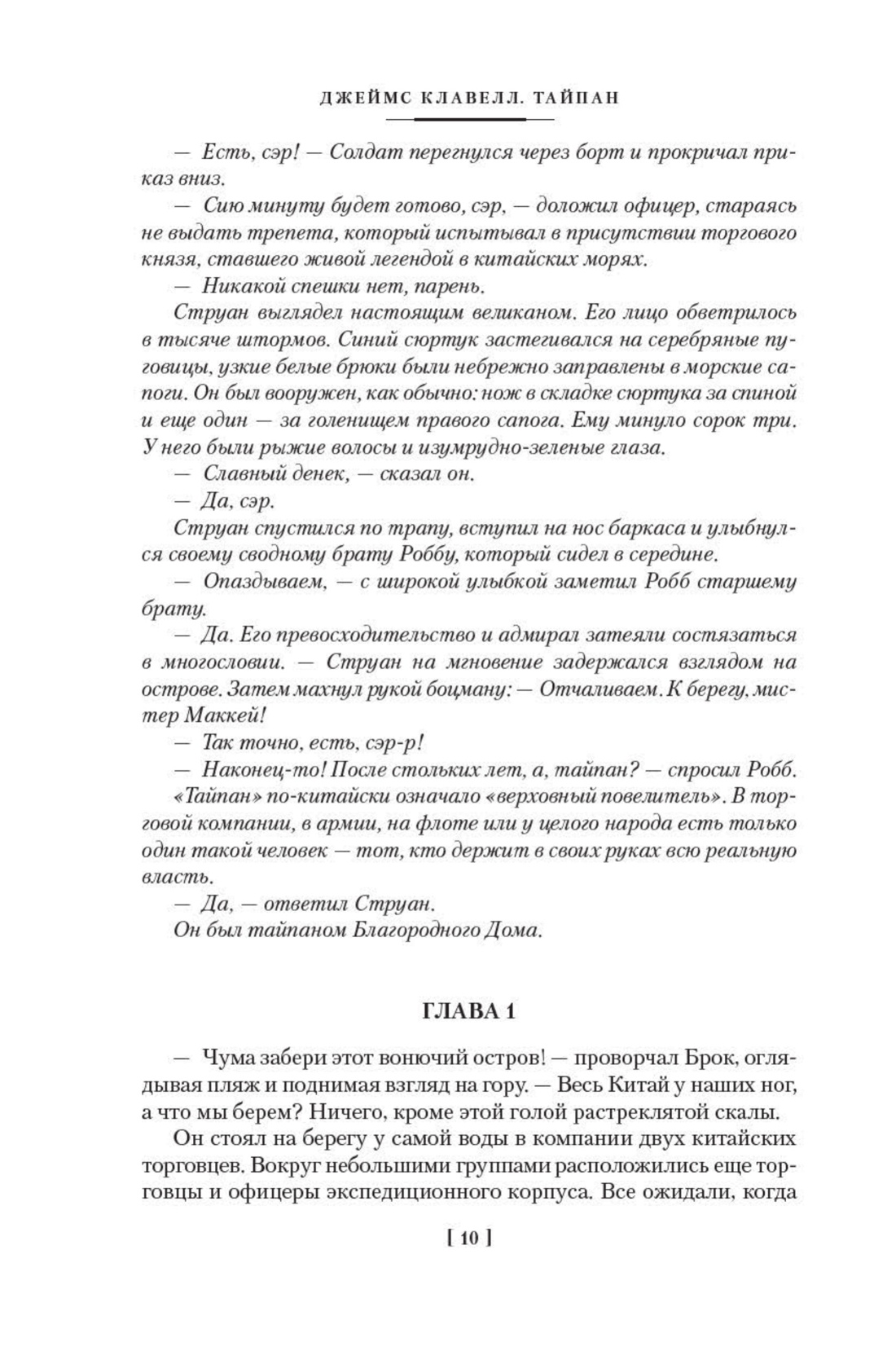 Южный Китай в 1840–1841 годах. Европейские торговцы и авантюристы впервые начали проникать в Китай, сказочно богатую, полную опасностей и загадок страну. Жизнью платили эти люди за слабость, нерешительность и незнание обычаев Востока. И в это время англичанин Дирк Струан поставил себе целью превратить пустынный остров Гонконг в несокрушимый оплот британского могущества и подняться на вершину власти, став верховным повелителем — тайпаном.