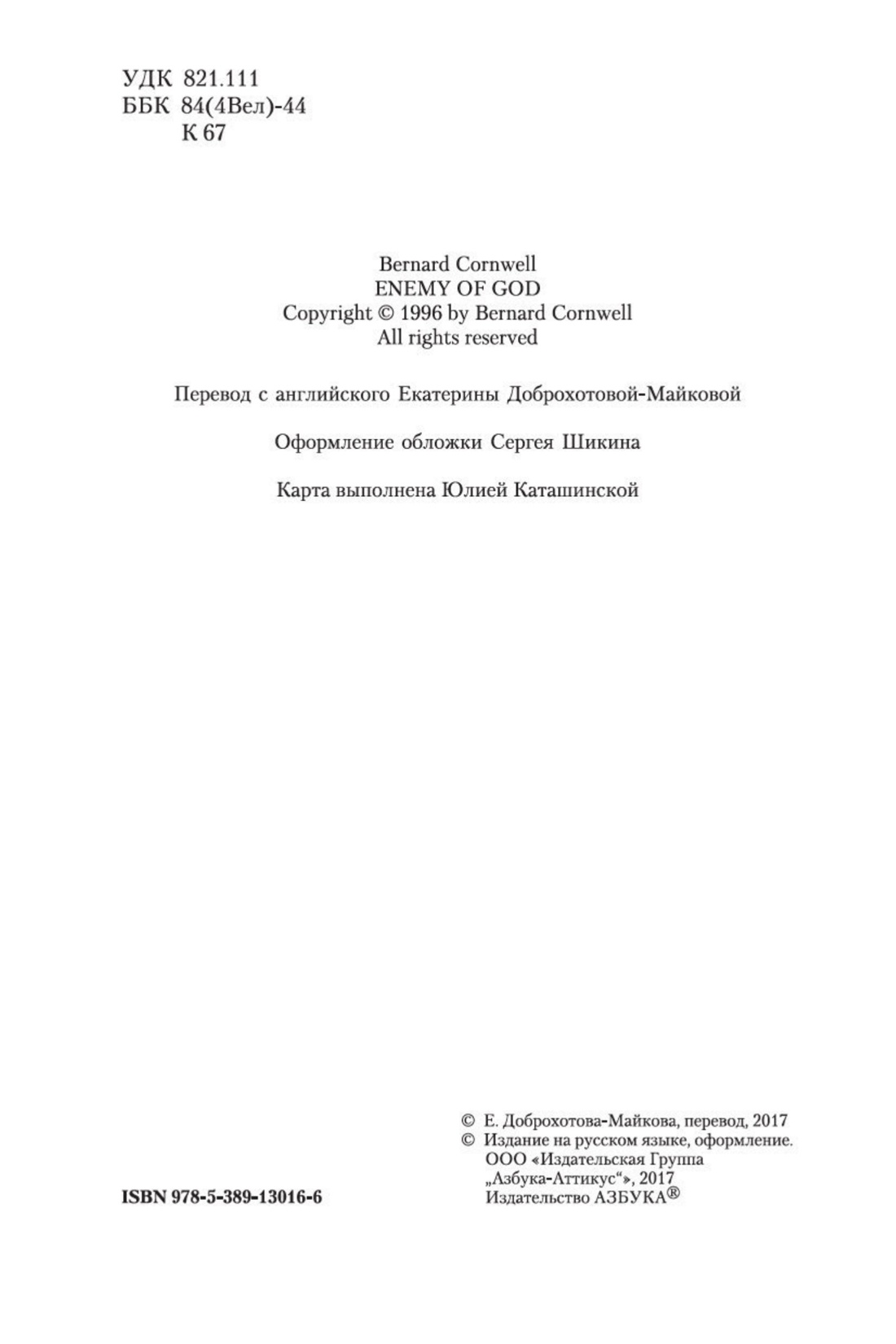 Великий король Артур, непобедимый вождь бриттов, успешно противостоял завоевателям-саксам, учредил рыцарский орден Круглого стола, за которым все были равны между собой. И пусть историческая правда погребена в той давней эпохе больших перемен, великого переселения народов и стремительно зарождающихся и исчезающих царств, завеса прошлого приоткрывается перед нами силой писательского таланта Бернарда Корнуэлла.