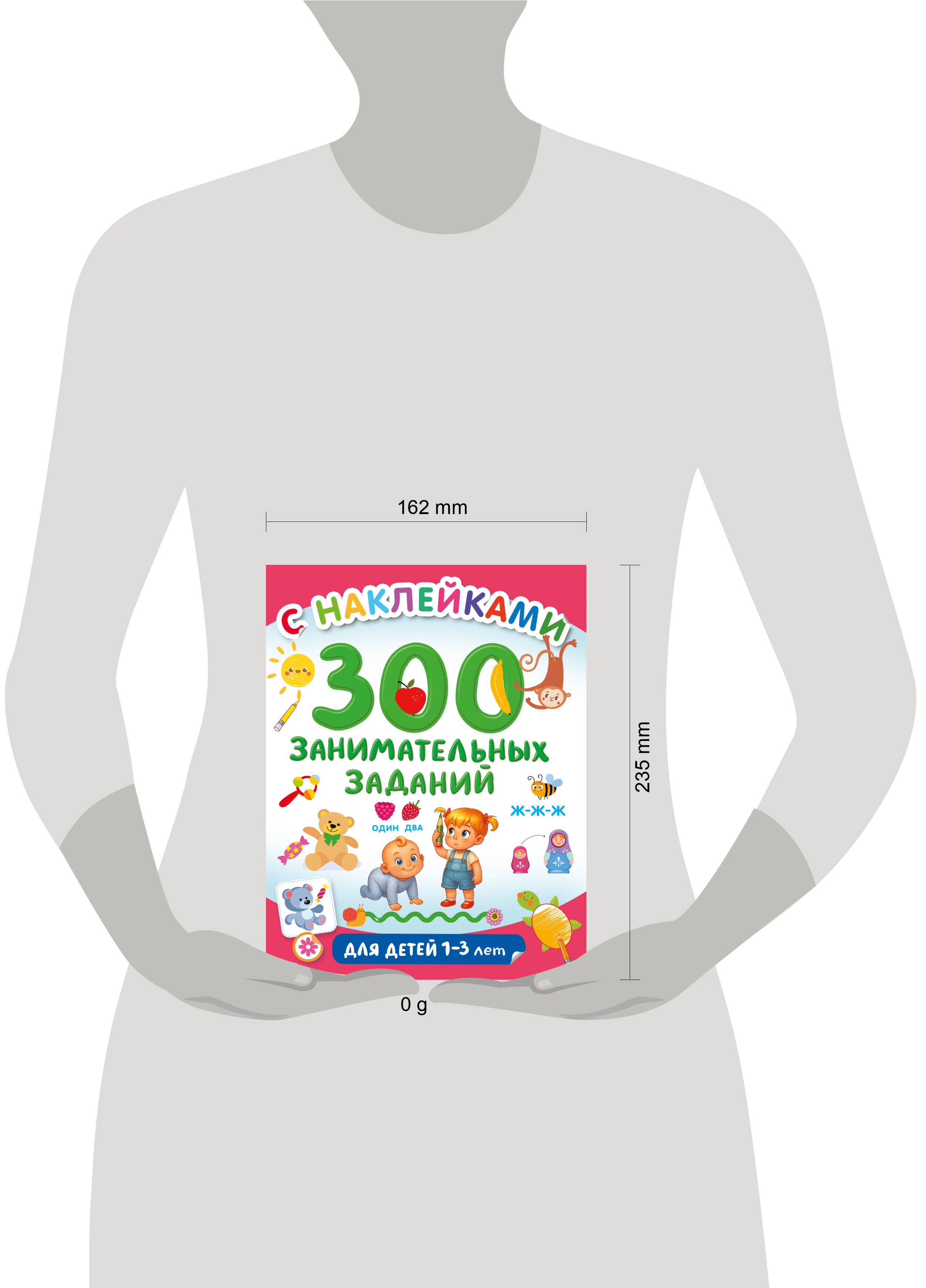 "300 занимательных заданий для детей 1-3 лет" — прекрасно иллюстрированная книжка для самых маленьких + 30 наклеек разного размера. Весёлые игры с картинками, песенки, потешки, первые раскраски, шагалки, стихи-болтушки, гимнастика для пальчиков — всё, что нужно для развития речи, мышления и эмоционального интеллекта, зрительного восприятия, мелкой моторики. На красочных страницах — интересные игровые сюжеты, которые помогут увлечь ребёнка. Бонус — крупные наклейки с хорошей печатью, легко отделяются от основы, прекрасно подойдут для детских пальчиков.