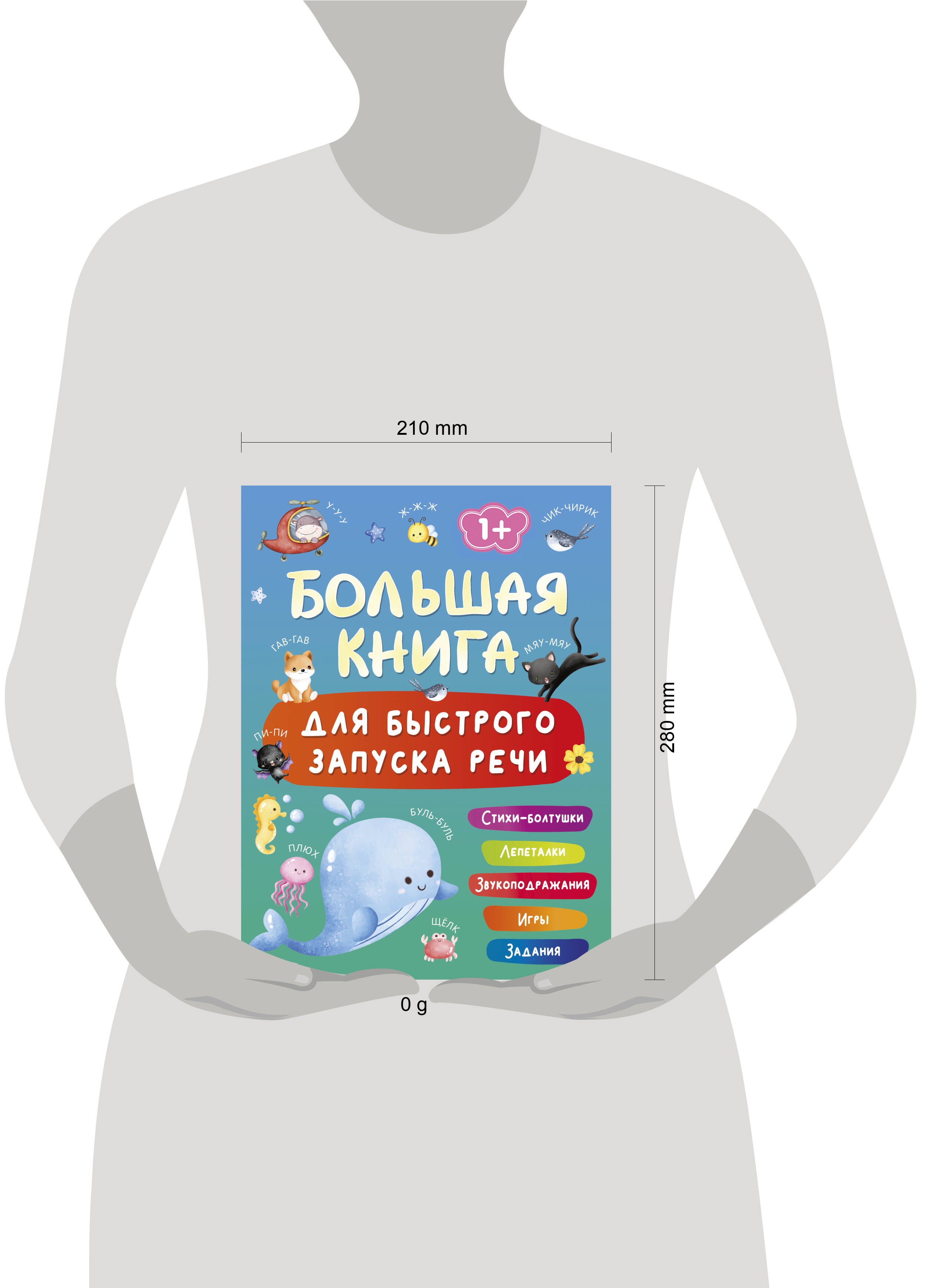 "Большая книга для быстрого запуска речи. 1-2 года" — полезное и красивое издание со стихами-болтушками, лепеталками, звукоподражаниями, играми и развивающими заданиями. В книге собраны все важные темы для развития речи и увеличения словарного запаса: животные, растения, овощи, фрукты, игрушки, транспорт, времена года, распорядок дня, цвета и многое другое.