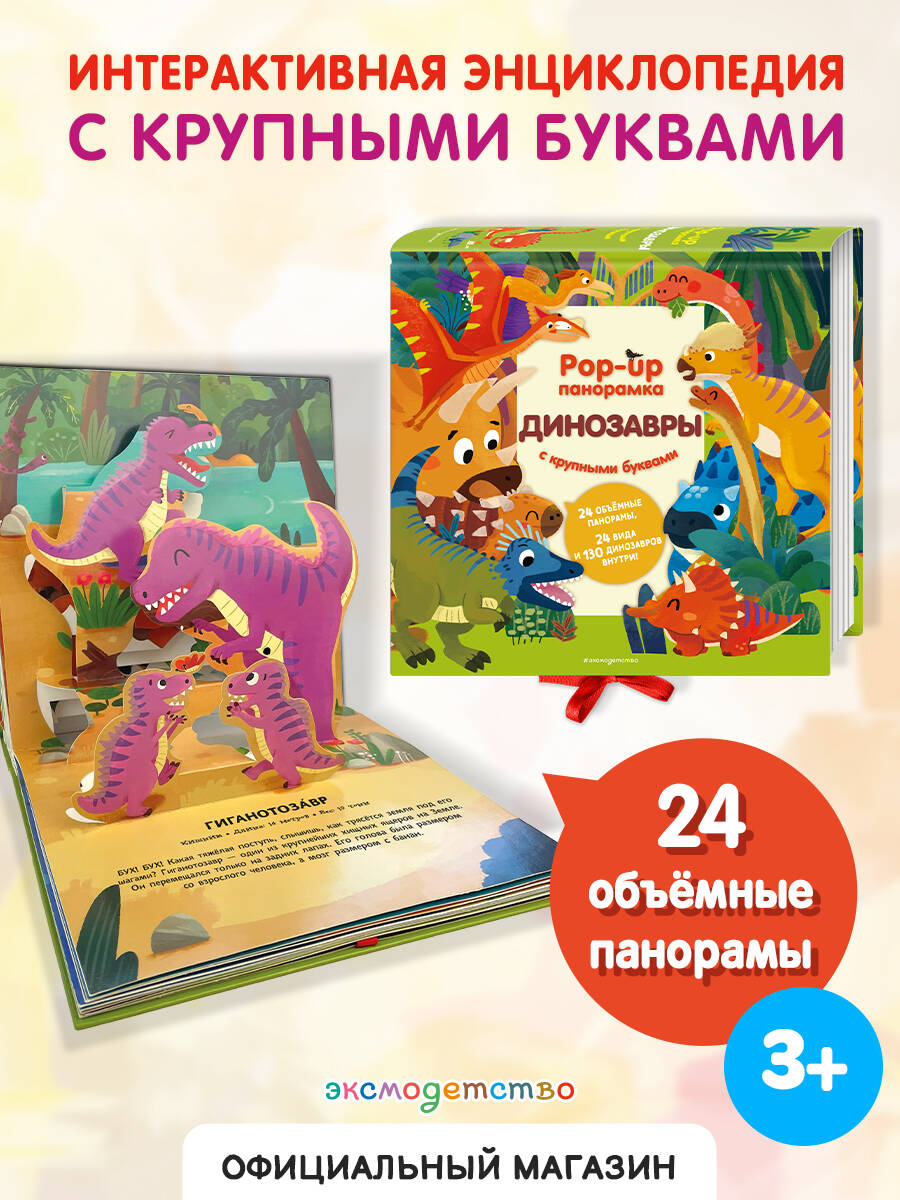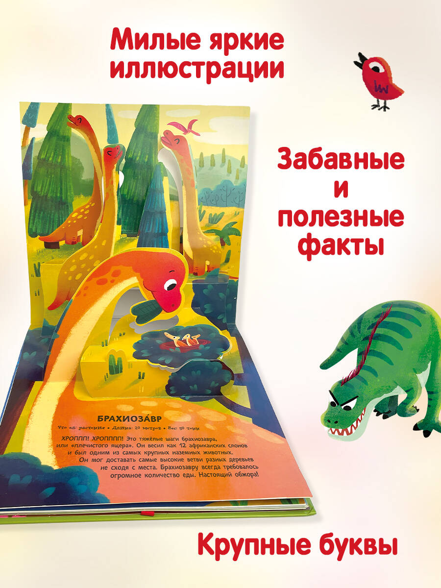 Отправляйтесь в путешествие во времени вместе с древними ящерами! Познакомьтесь с могучими тираннозаврами, грациозными стегозаврами, крылатыми птерозаврами и узнайте самые интересные факты о доисторических рептилиях. Красочные панорамные иллюстрации и объемные pop-up-фигуры оживляют каждую страницу этой книжки-игрушки.
