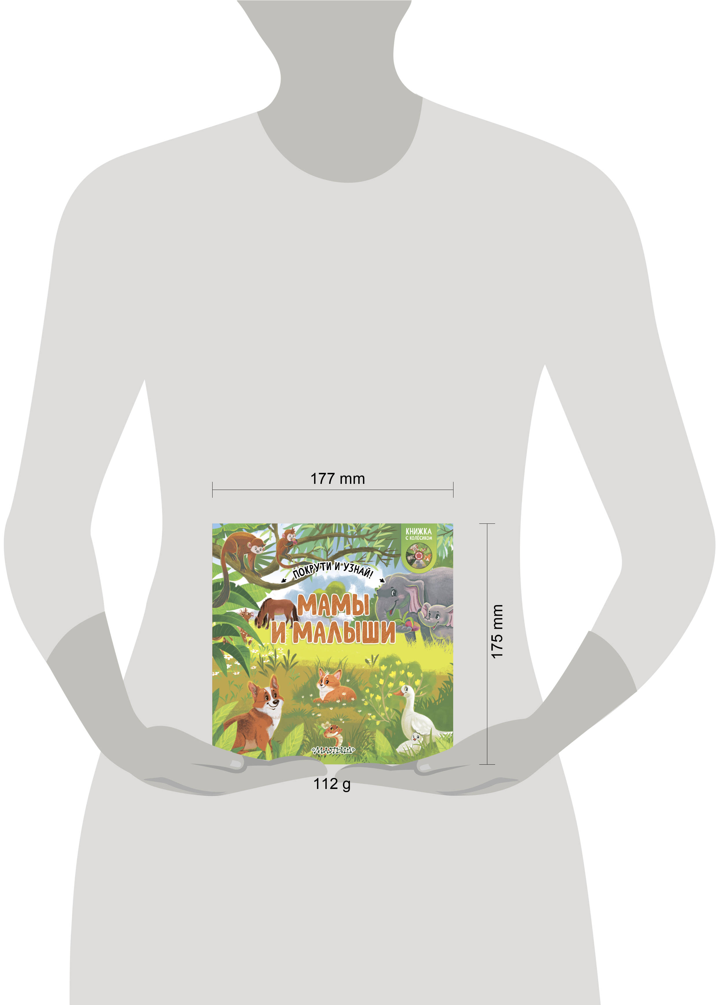 Это книга первых знаний о животных и их малышах. В игровой форме, прокручивая колёсико, ребёнок сможет подобрать мамам-животным их малышей и запомнит, кто как называется. Книга поможет развить ребенку любознательность и воображение, мелкую моторику и логику.