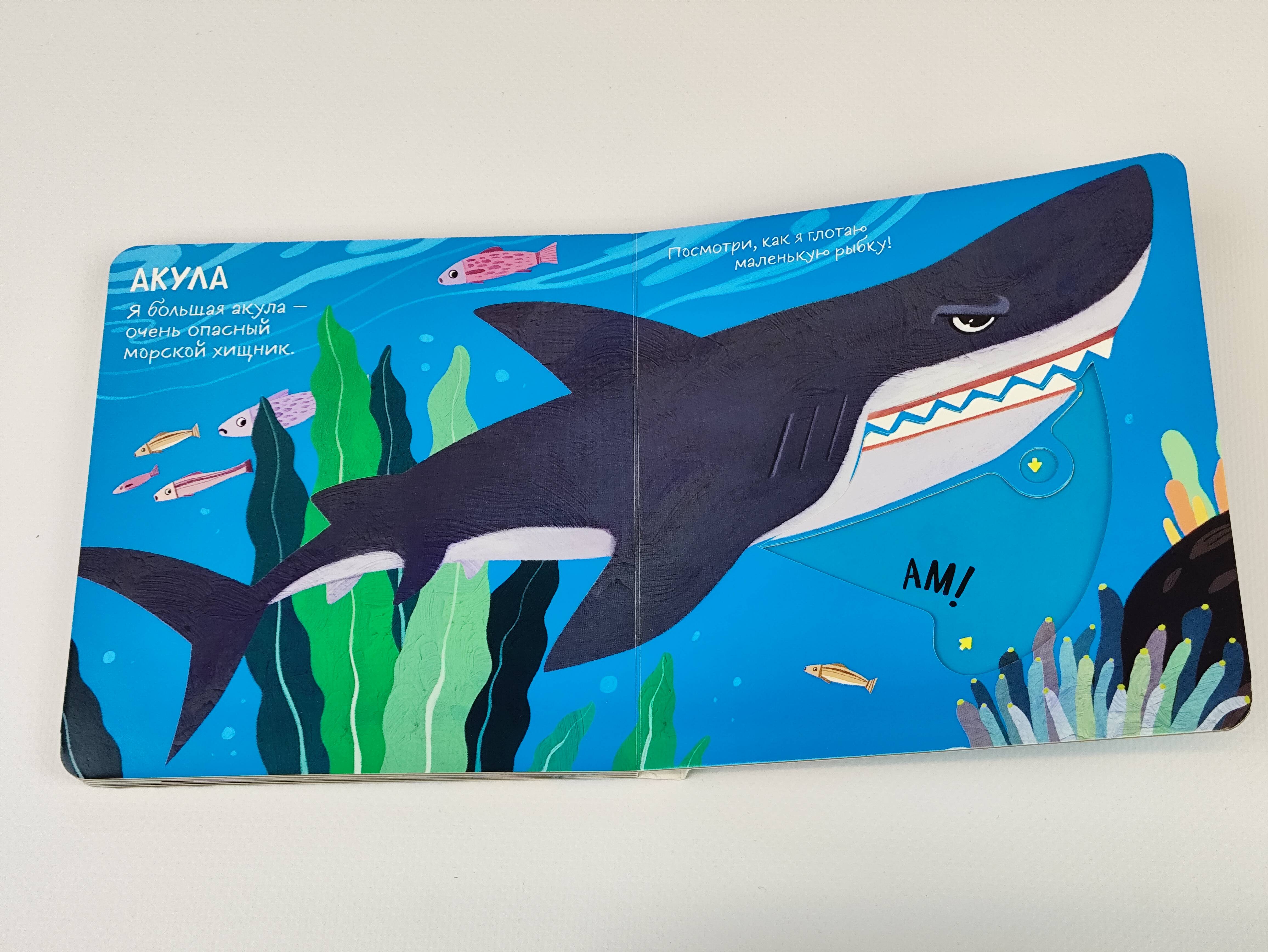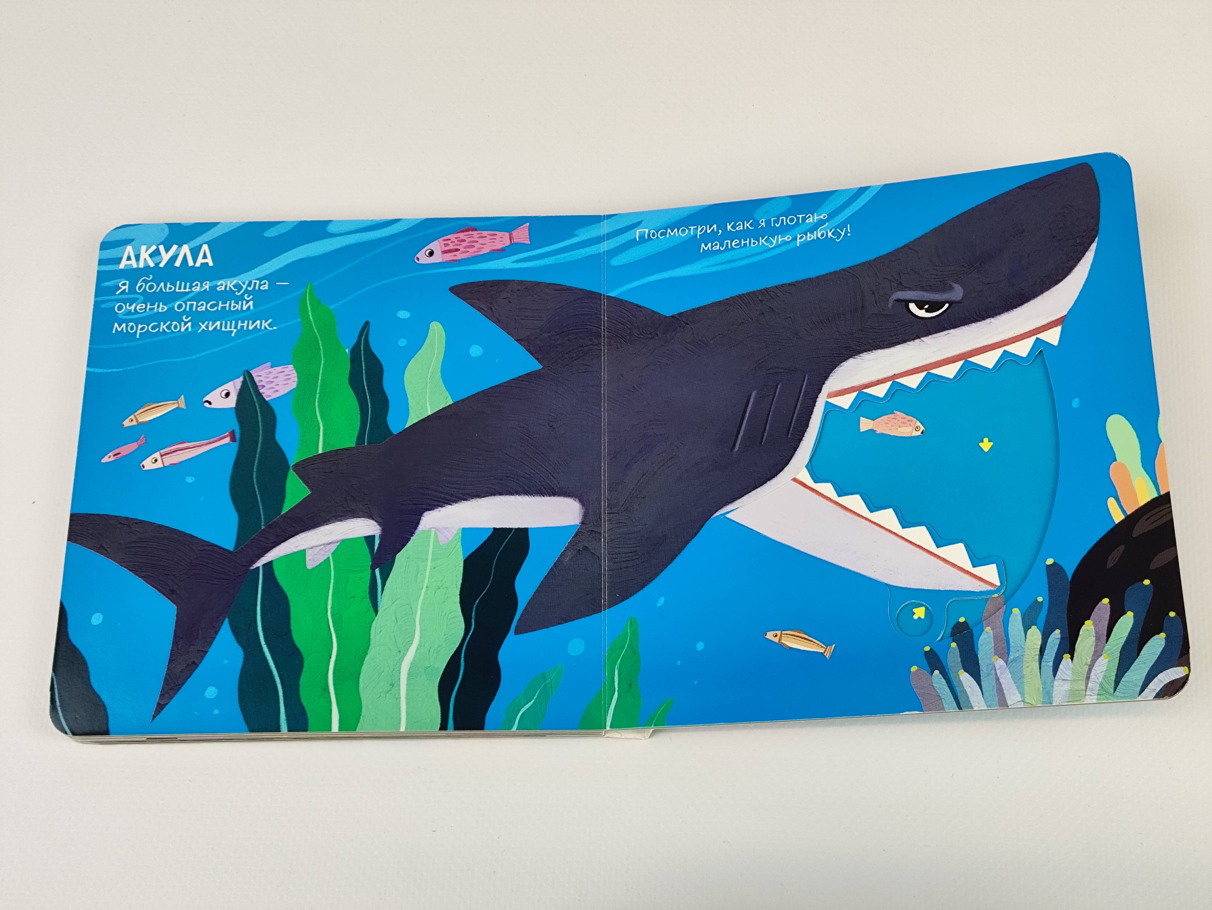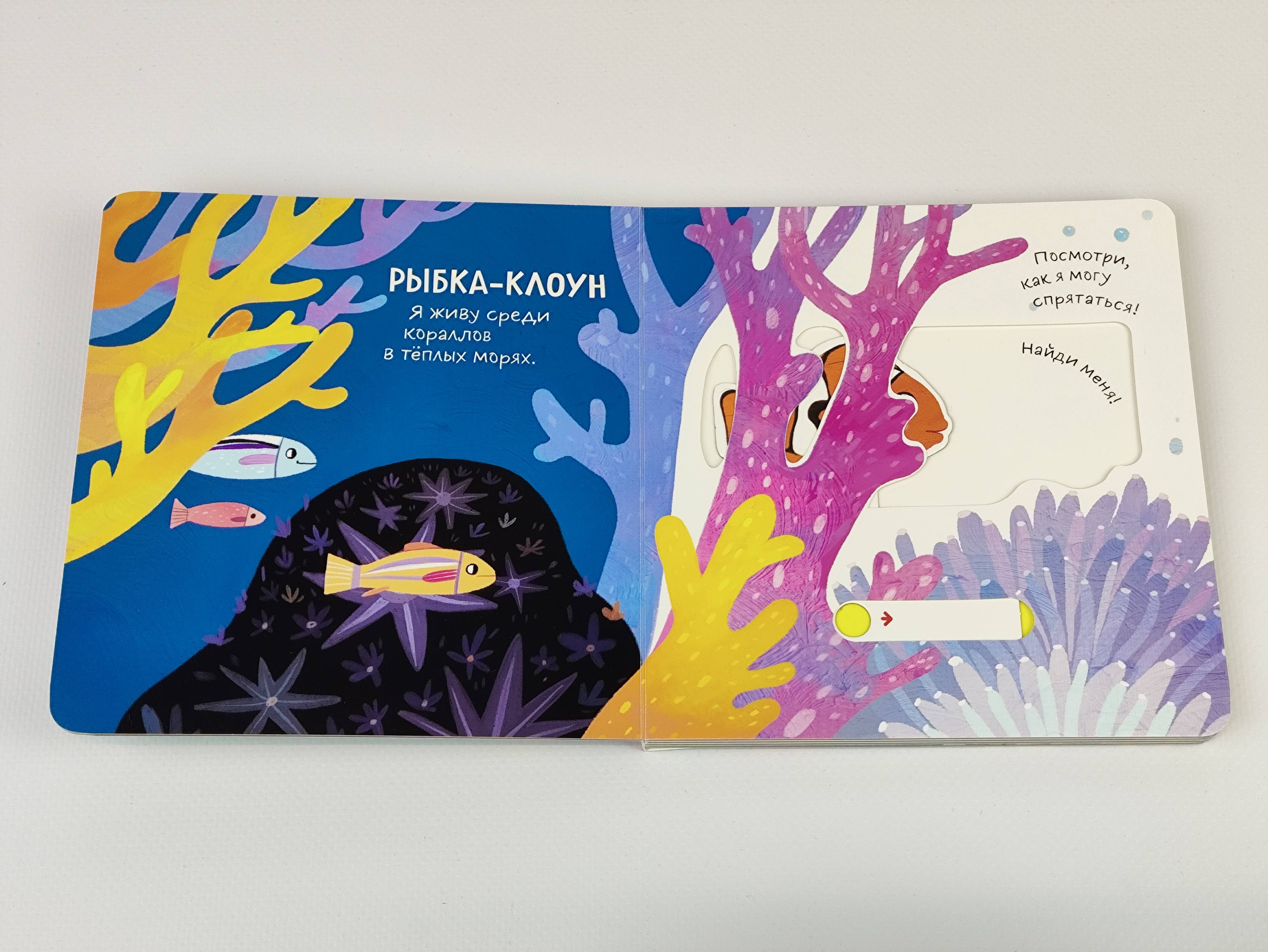 Яркие картинки, простые и забавные тексты познакомят ребенка с первыми интересными фактами о морских обитателях. А подвижные элементы помогут развить мелкую моторику, внимание и воображение.