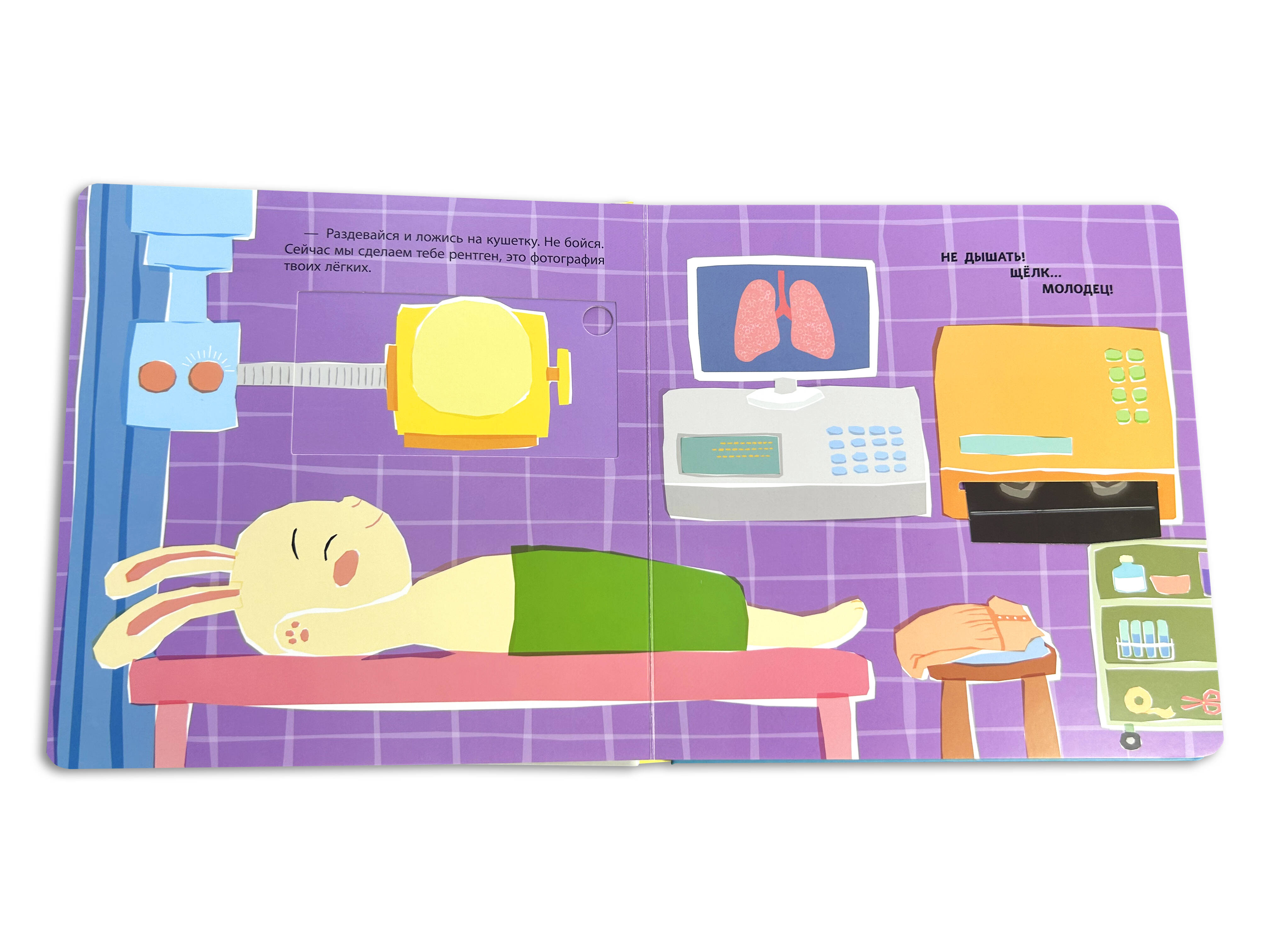 Играем в доктора! Невероятно увлекательная 3D-книга для детей — на каждом развороте расположены интерактивные элементы, которые выглядят и работают как настоящие медицинские инструменты.