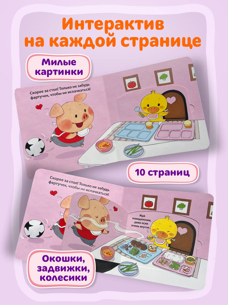 Как правильно вести себя за столом? Какие продукты самые полезные? Почему нельзя торопиться во время еды? Вместе с веселым Поросенком малыш узнает простые и важные правила, которые помогут ему вырасти здоровым и воспитанным.