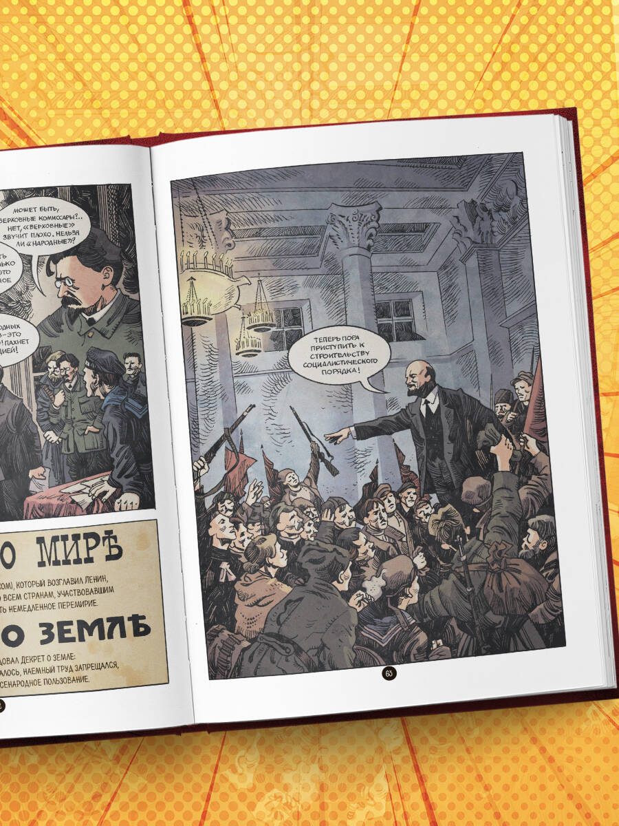 История — это не только действия, но и идеи. Простые и ясные иллюстрации объясняют сложные философские и политические концепции большевизма.
