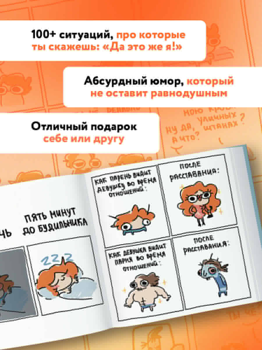 - внутри 100+ ситуаций, в которых ты узнаешь себя, свою подружку, кота и даже того странного таксиста, который преисполнился в своём познании