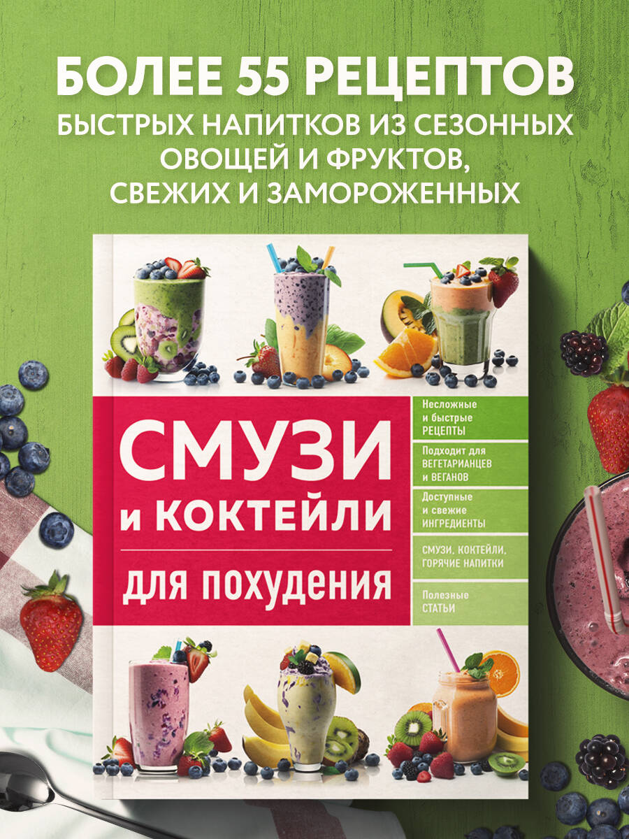 В книге собрано более 55 рецептов, подходящих для вегетарианцев и веганов, для тех, кто придерживается низкоуглеводной диеты или просто сократил потребление сахара, варианты на основе молочных и кисломолочных продуктов, а также на растительном молоке. Сделайте свою жизнь комфортнее с книгой «Смузи и коктейли для похудения».