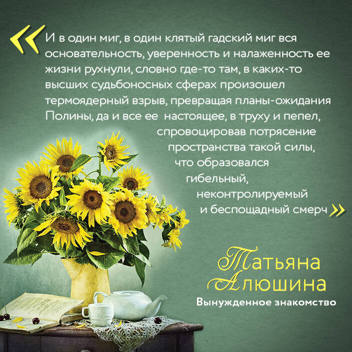 Романы Татьяны Алюшиной — это вдохновляющие истории о настоящей любви, творящейся здесь и сейчас, как будто у нас на глазах. Герои ее книг — простые люди. Кажется, что это мы сами на страницах романа: влюбляемся, ошибаемся и неустанно ищем счастья. Поэтому книги Татьяны Алюшиной завоевывают сердца и мгновенно становятся бестселлерами. Полюбите их и вы!