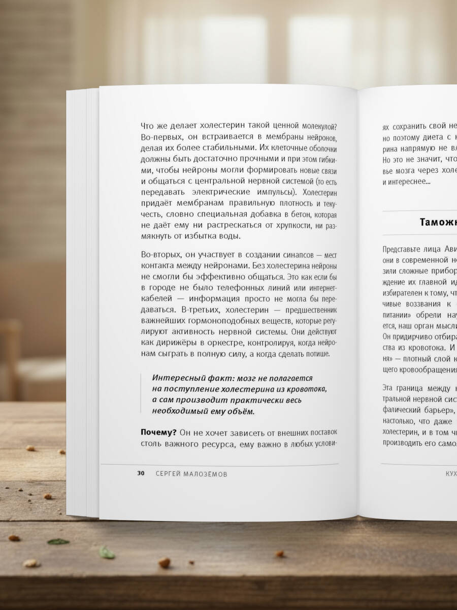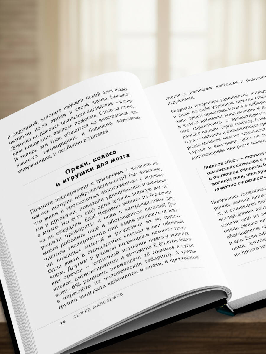 В новой книге известный журналист и врач Сергей Малозёмов погружается в самые свежие исследования от ведущих нейрофизиологов со всего мира, посвящённые влиянию еды на работу мозга.