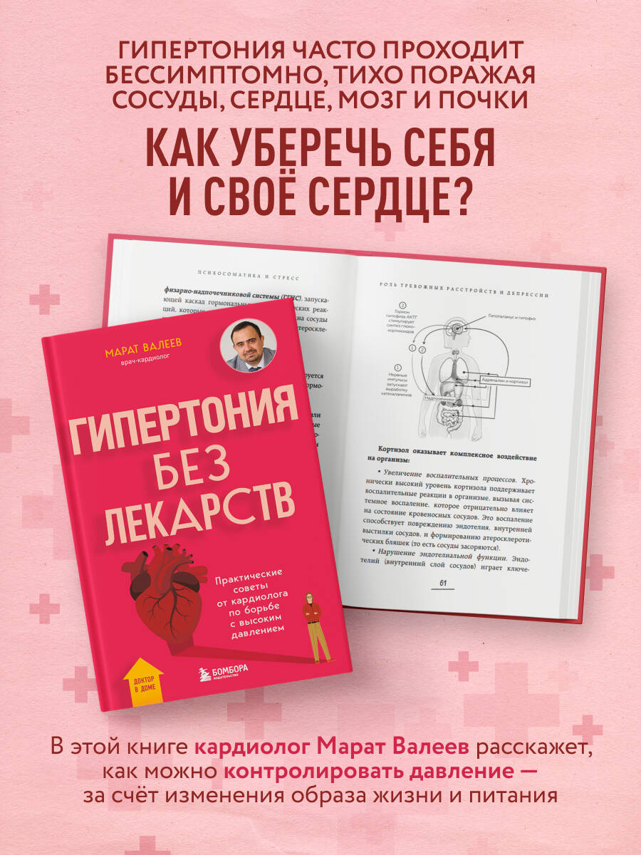 Многолетний опыт Марата Валеева, настоящего специалиста в области кардиологии, показывает: большинство людей совершенно не умеет слушать сигналы своего организма и обращается за помощью лишь тогда, когда начались серьезные осложнения. Если вы держите в руках эту книгу, вас уже можно похвалить за более осознанное отношение к своему телу и храбрость в начинании пути улучшения своего здоровья. Эта книга написана специально для вас — желающих поменять свою жизнь к лучшему. Автор разложит каждый аспект, связанный с гипертонией, по полочкам, покажет, как в ваших привычках и повседневных мелочах может прятаться корень болезни. Без лишней воды вам объяснят, как работает сердце, откуда вообще берутся болезни с сердцем и как они связаны с психосоматикой и стрессом вокруг нас.