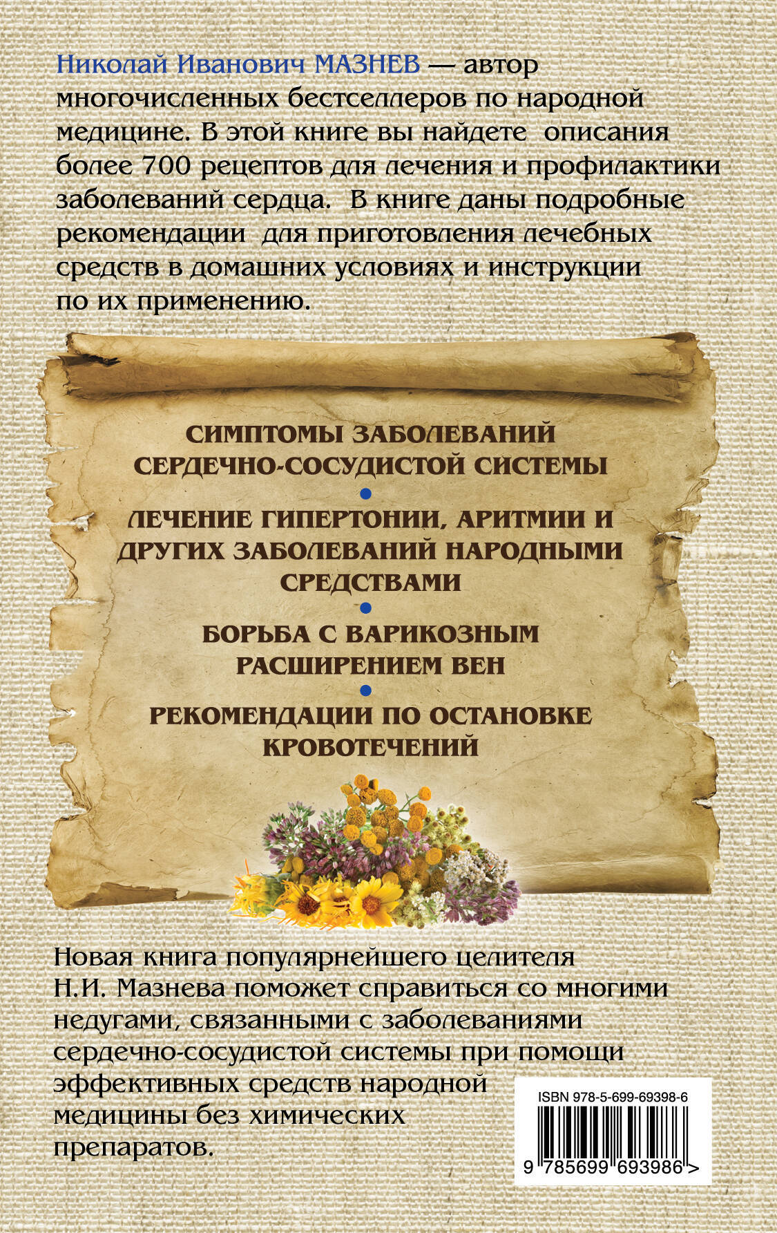 В книге содержатся самые эффективные и проверенные веками народные рецепты лечения и профилактики различных заболеваний сердечно-сосудистой системы — от гипертонии до тахикардии, а также многих других недугов. Все рецепты подробно описаны и просты в приготовлении.