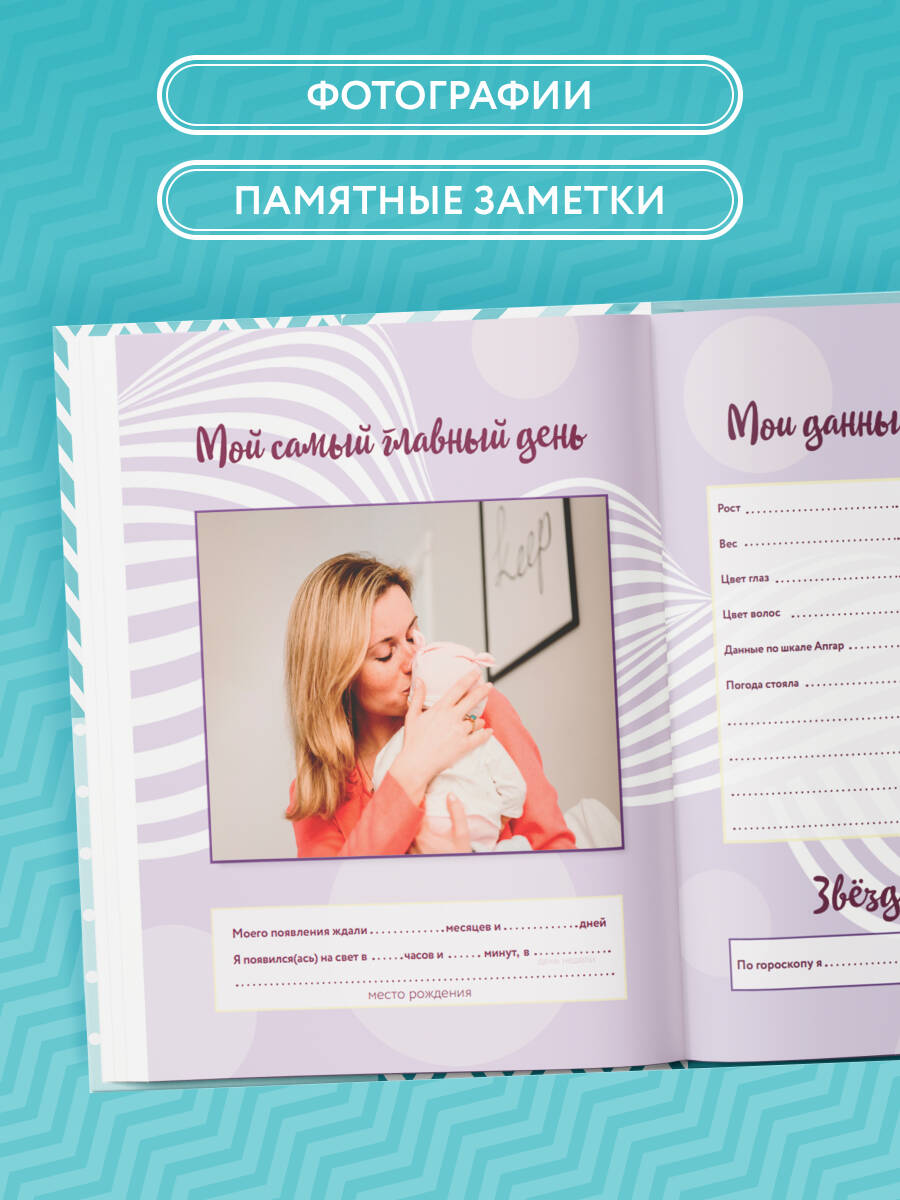 Этот альбом со стильным геометрическим оформлением предназначен для записи всех важных событий первого года жизни вашего малыша. Приклеивайте фотографии, записывайте истории, сохраните самую важную память о детстве вашего ребенка!
