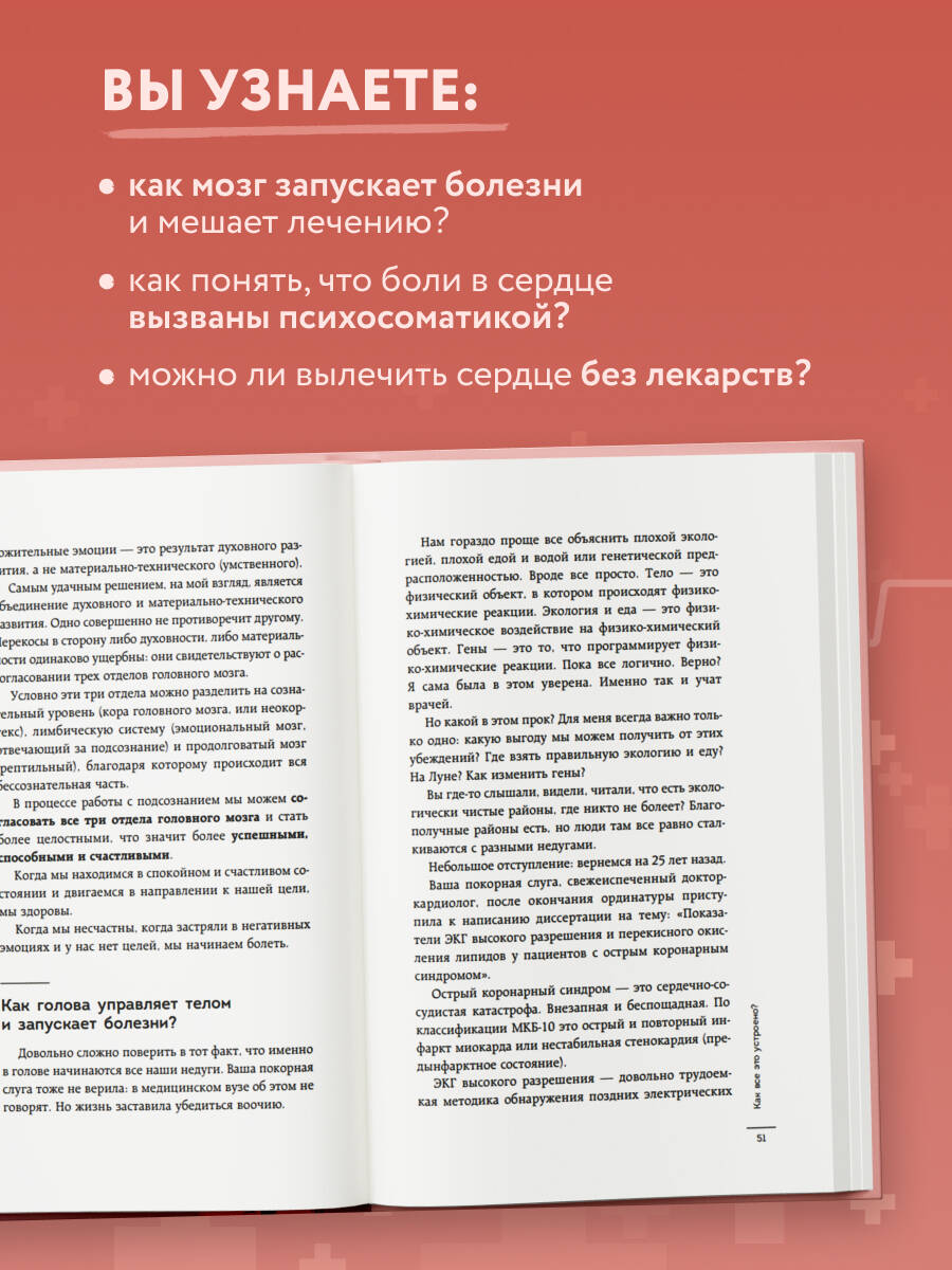 Эта книга — ваш проводник к пониманию скрытых причин сердечных недугов и ключ к исцелению через работу с психикой. Если вы устали от бесконечных обследований, не приносящих ответов, или от лекарств, которые лишь заглушают симптомы, — эта книга предложит вам другой путь. Освободитесь от страха, возьмите здоровье под контроль и верните радость жизни, устранив истинную причину проблем — хронический стресс. Решите проблему не на уровне симптомов, а на уровне причины.