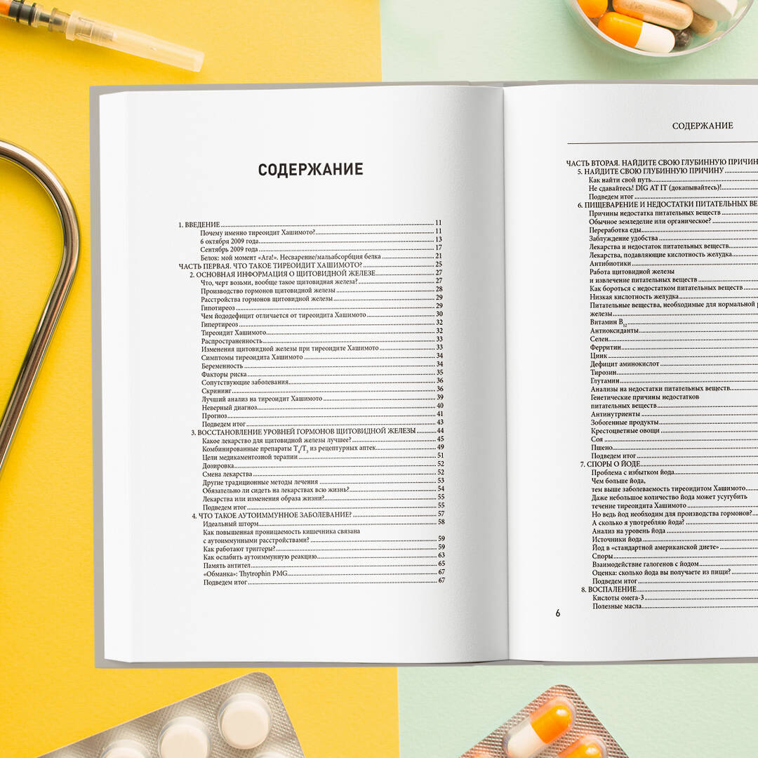 Что на самом деле происходит с больным при развитии заболевания, известного как Хашимото? Болезнь Хашимото — это нечто большее, чем просто гипотиреоз. У значительной части пациентов будут наблюдаться кислотный рефлюкс, дефицит питательных веществ, анемия, проницаемость кишечника, чувствительность к пище, заболевания десен и гипогликемия в дополнение к «типичным» симптомам гипотиреоза — увеличению веса, непереносимости холода, выпадению волос, усталости и запорам. Организм застревает в порочном круге перегрузки иммунной системы, недостаточности надпочечников, нарушения пищеварения, хронического воспаления и недостаточной выработки гормонов. Этот цикл — самоподдерживающийся и будет продолжать вызывать все больше и больше симптомов до тех пор, пока не вмешается внешний фактор и не разорвет порочный круг. Автор предлагает начать с простейших модификаций, удалив из своей жизни триггеры воспаления, а затем обозначает ряд шагов, позволяющих восстановить другие нарушенные системы, чтобы вернуть в организм равновесие и здоровье.