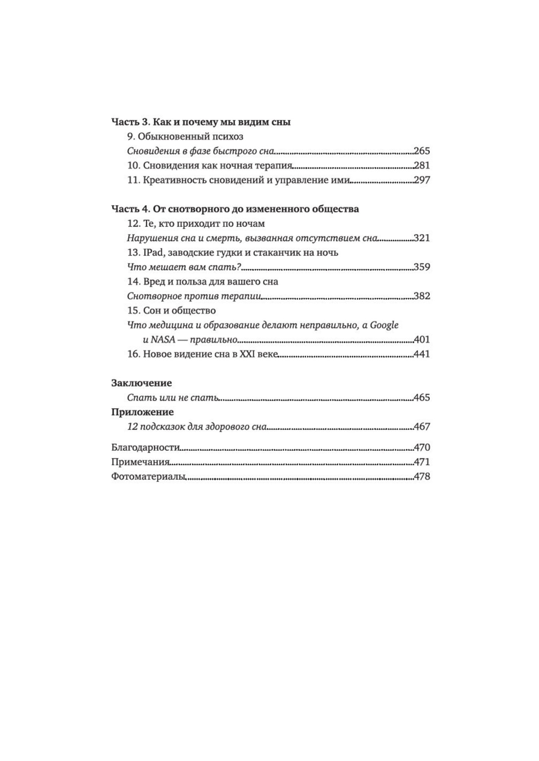 Каждая составляющая крепкого здоровья и многочисленные социальные связи разрушаются нашим пренебрежительным отношением ко сну, которое обходится нам весьма дорого — как с человеческой, так и с финансовой точки зрения. Невролог Мэттью Уолкер исследует проблемы сна, с которыми сталкивается множество современных людей, и объясняет, почему мы ни в коем случае не должны жертвовать сном ради чего-то, что кажется нам более значимым.