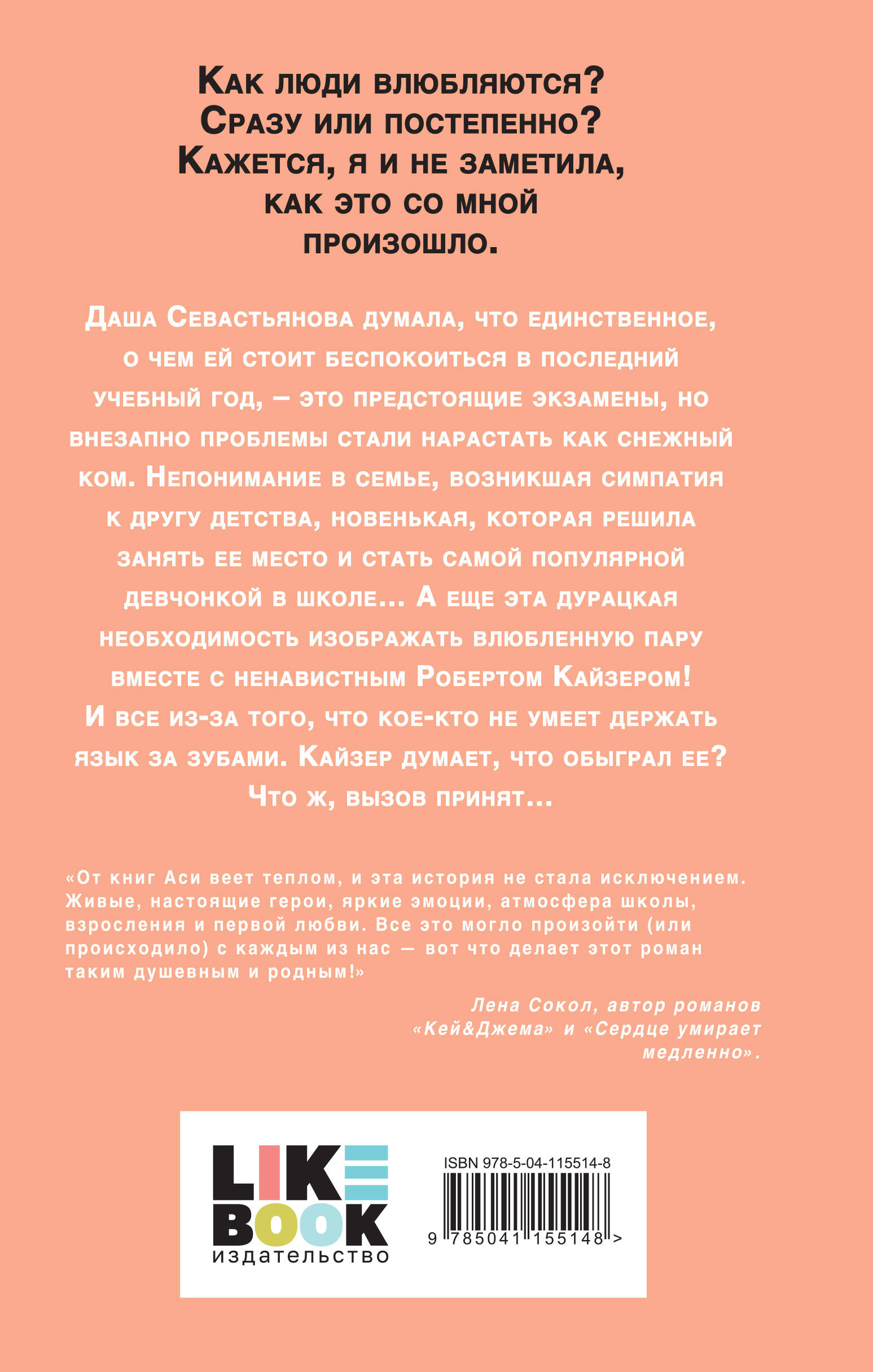 Даша Севастьянова думала, что единственное, о чем ей стоит беспокоиться в последний учебный год, это предстоящие экзамены, но внезапно проблемы стали нарастать как снежный ком. Непонимание в семье, возникшая симпатия к другу детства, новенькая, которая решила занять ее место и стать самой популярной девчонкой в школе… А еще эта дурацкая необходимость изображать влюбленную пару вместе с ненавистным Робертом Кайзером! И все из-за того, что кое-кто не умеет держать язык за зубами. Кайзер думает, что обыграл ее? Что ж, вызов принят…