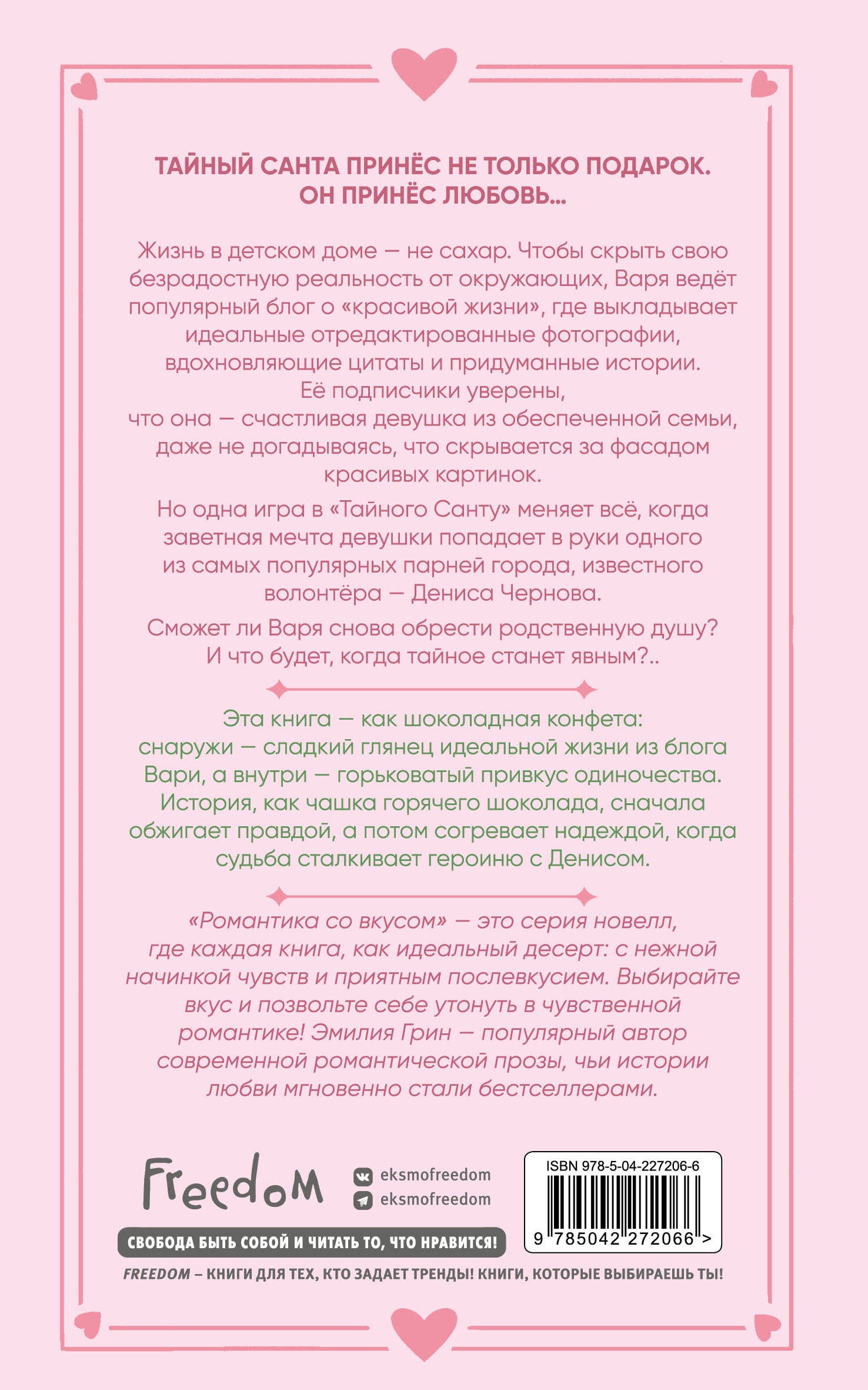 Но одна игра в «Тайного Санту» меняет все, когда заветная мечта девушки попадает в руки одного из самых популярных парней города, известного волонтера — Дениса Чернова.
